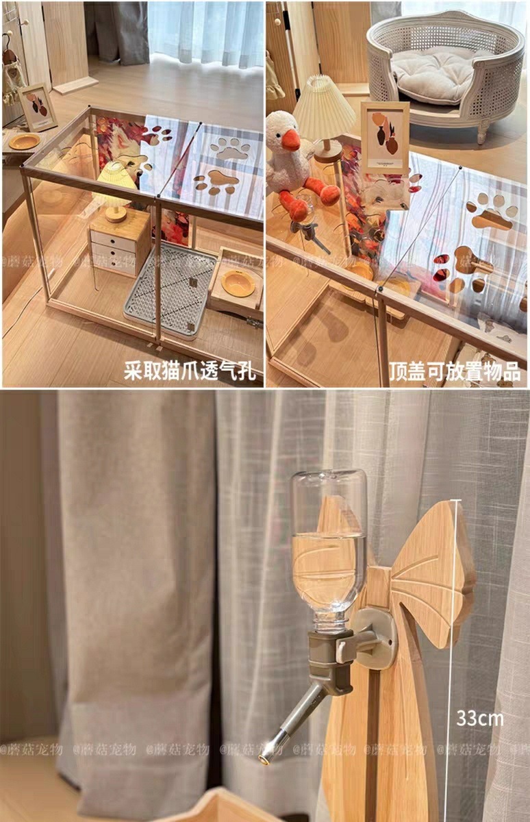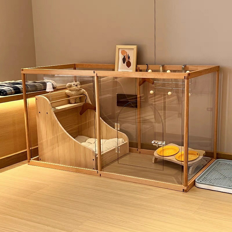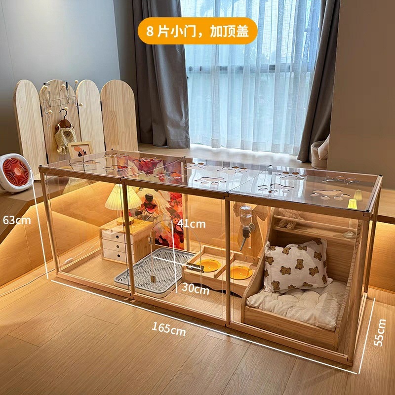 단단한 나무 개 울타리 접합 격리 울타리 개 케이지 작은 개 특별한 실내 투명한 울타리 애완 동물 빌라