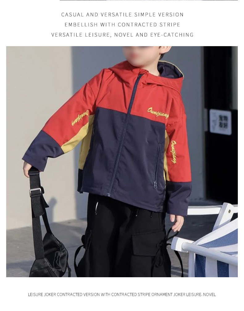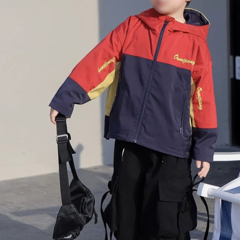 소년 러쉬 재킷 어린이 안코라 레드 방수 후드 컬러 매칭 올 매치 세련된 재킷 탑 패션