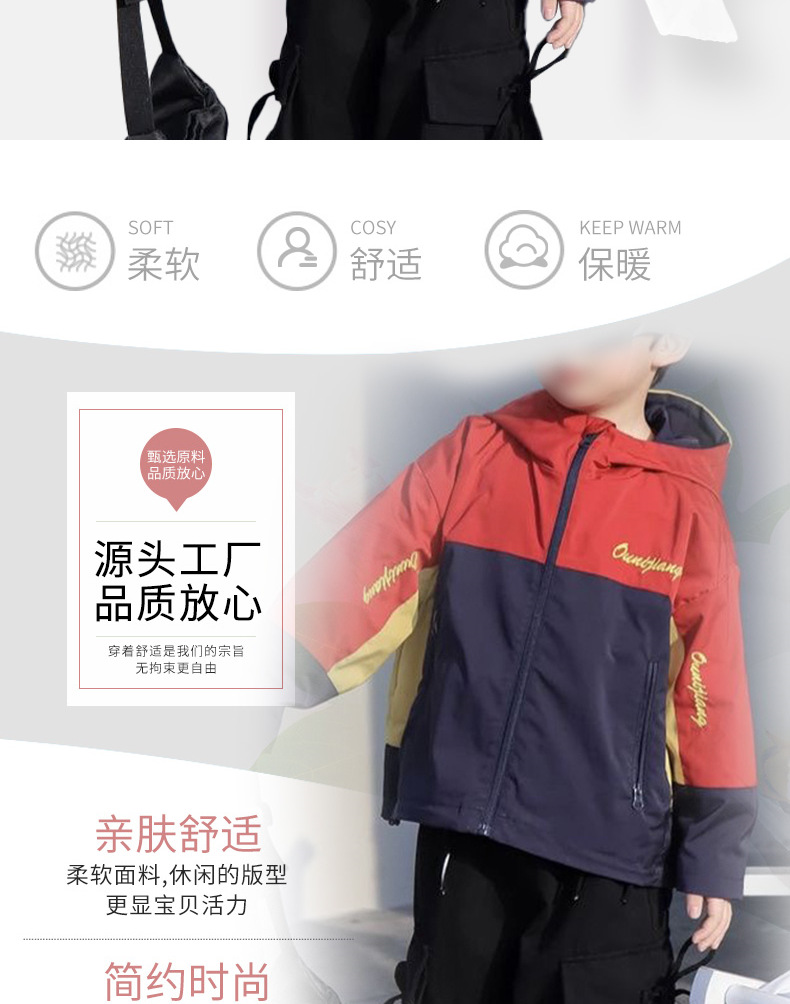 소년 러쉬 재킷 어린이 안코라 레드 방수 후드 컬러 매칭 올 매치 세련된 재킷 탑 패션스토어 가기