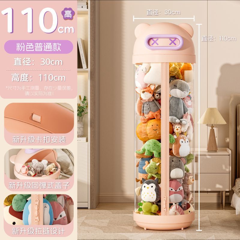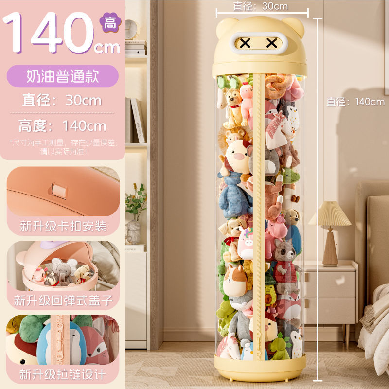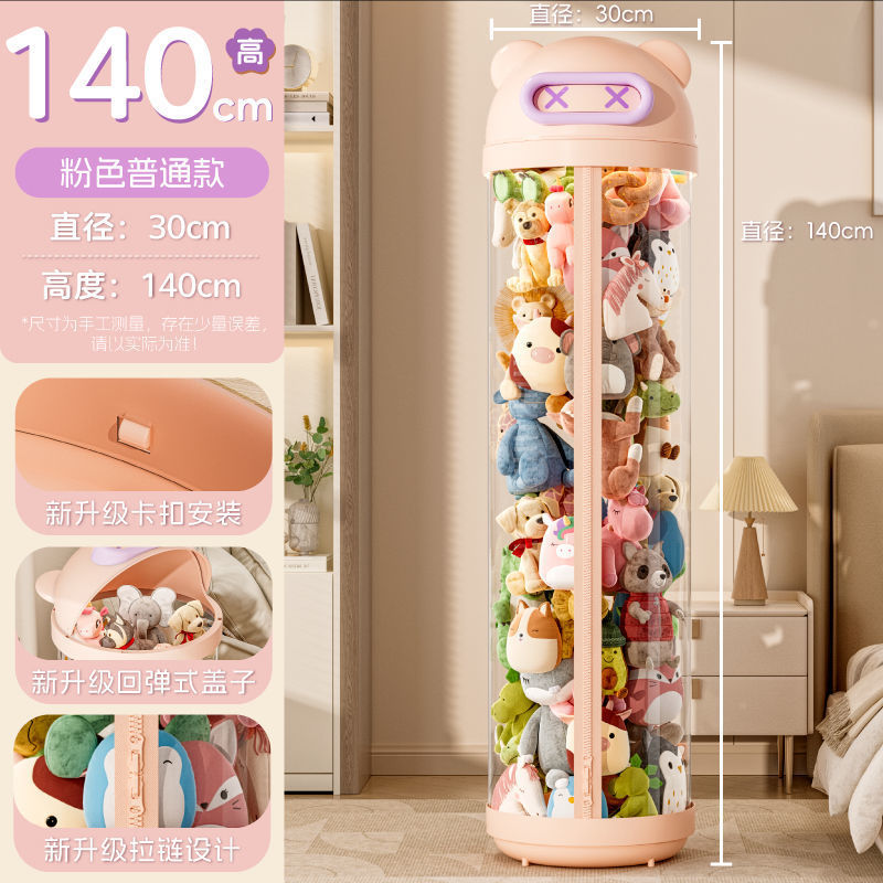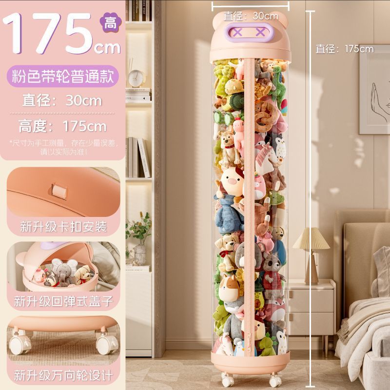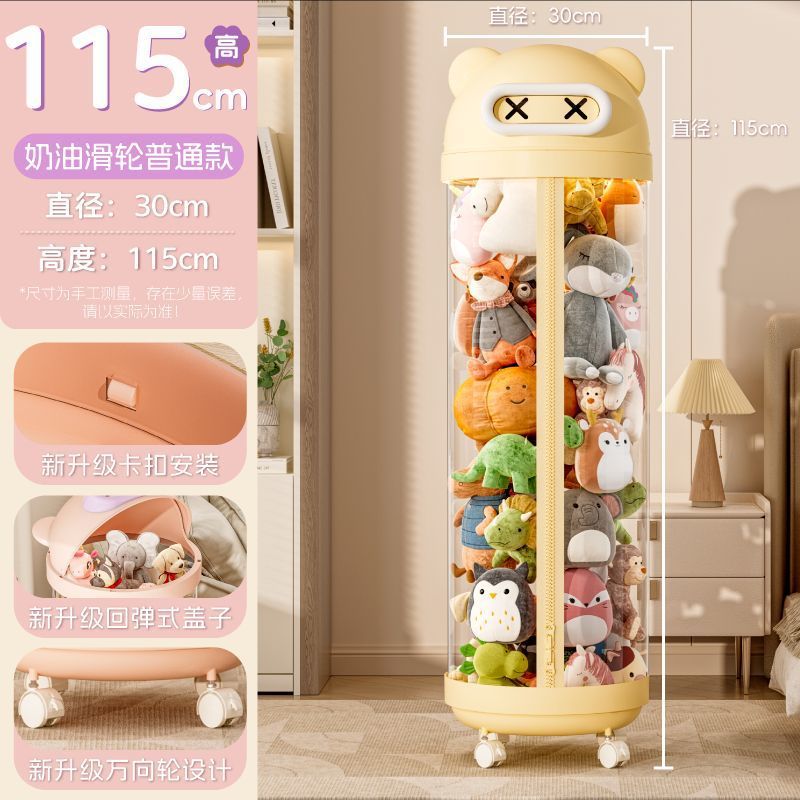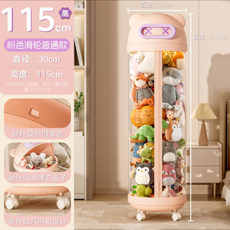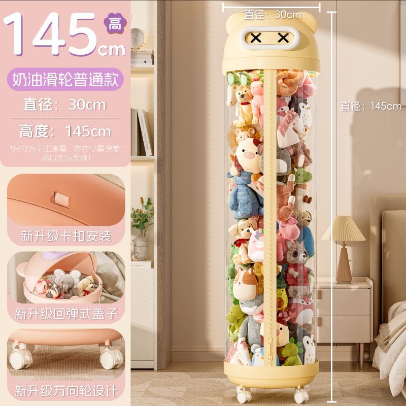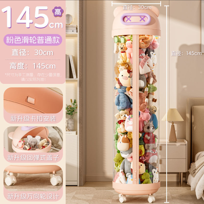 장난감 저장 랙 인형 저장 배럴 지퍼 방진 어린이 봉제 장난감 투명 휠 보관 마감 인공물스토어 가기