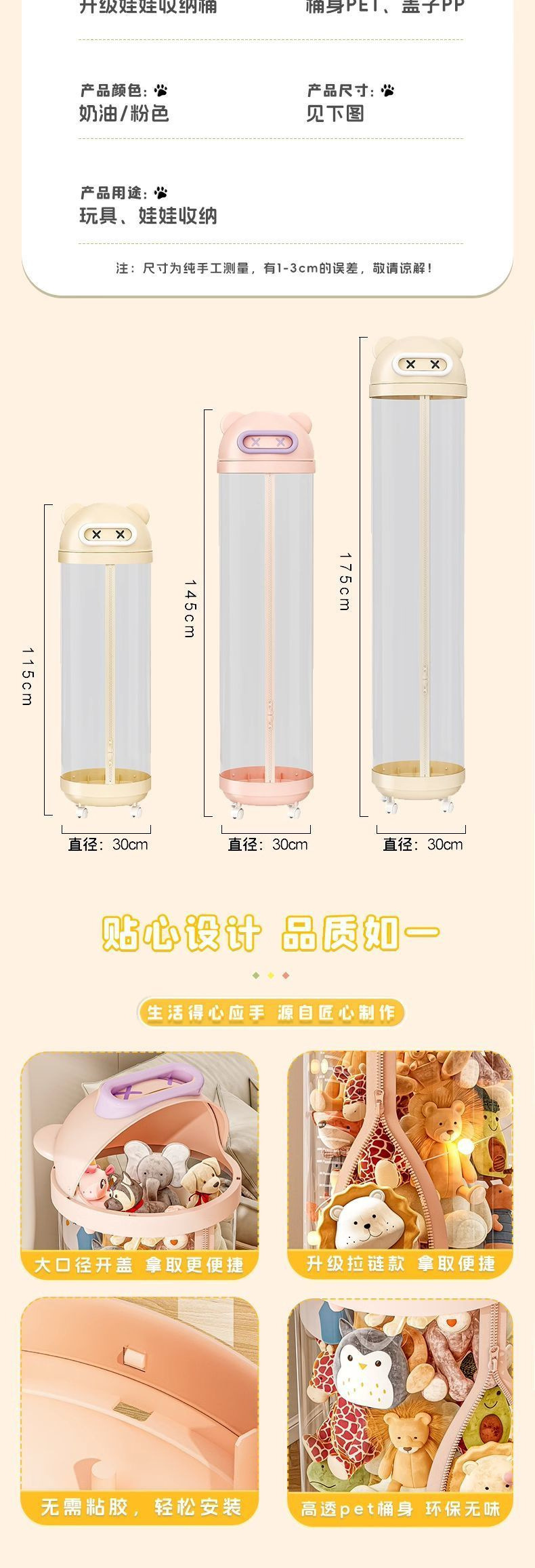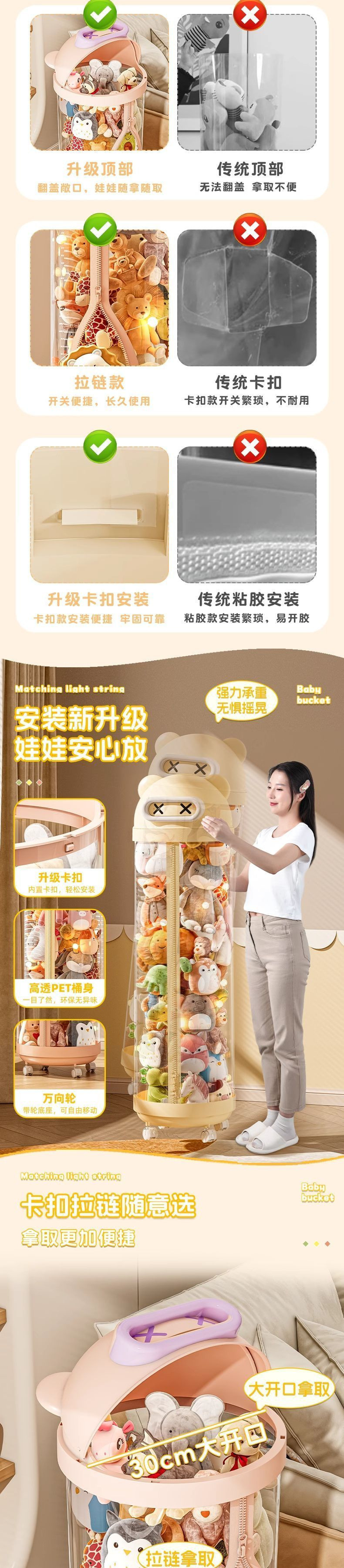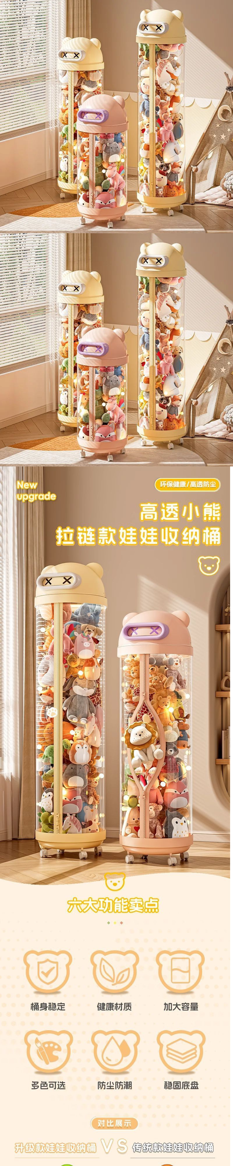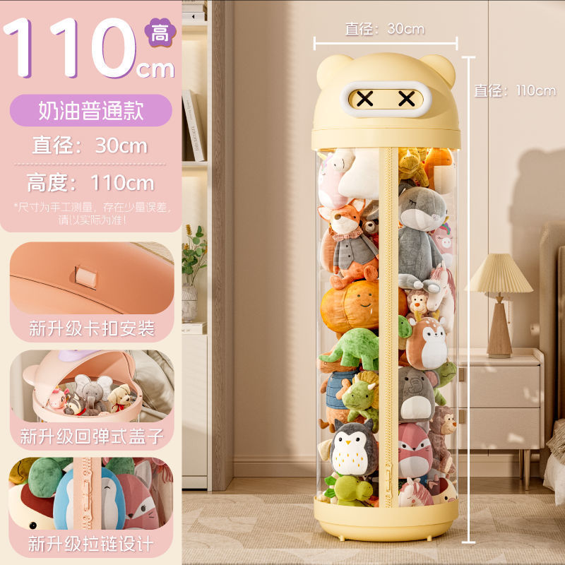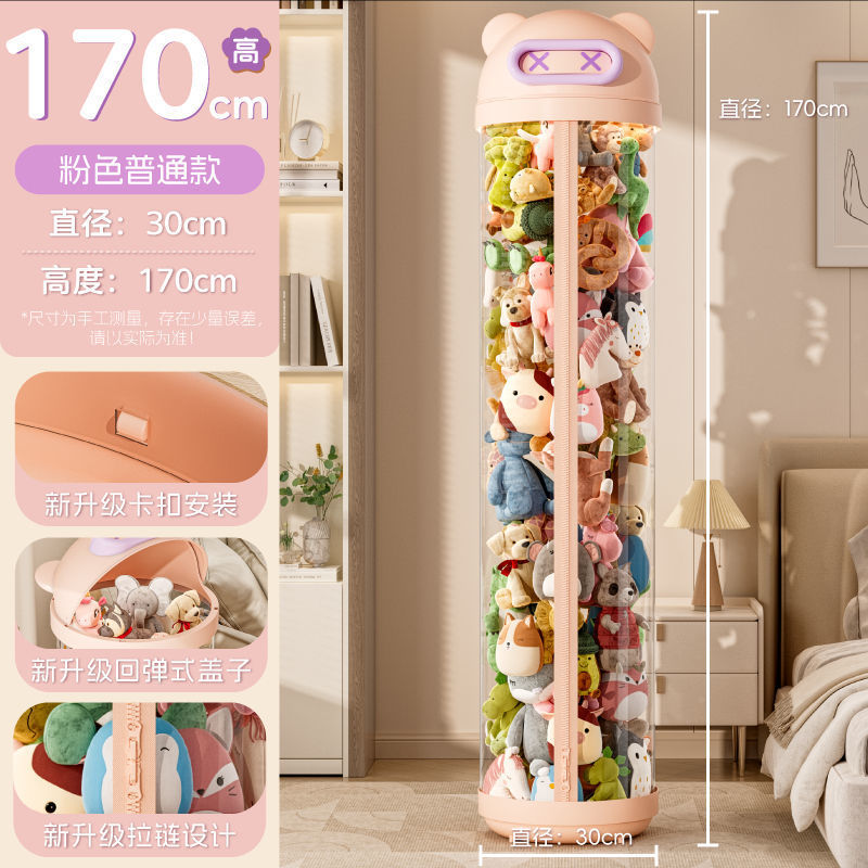 장난감 저장 랙 인형 저장 배럴 지퍼 방진 어린이 봉제 장난감 투명 휠 보관 마감 인공물스토어 가기