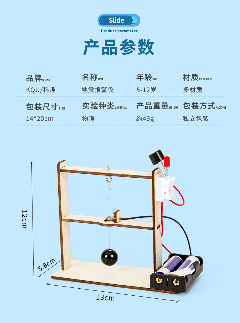 과학 실험 diy 지진 경보 모델 증기 과학 기술 작은 생산 작은 발명 교육 보조 재료 패키지 세트
