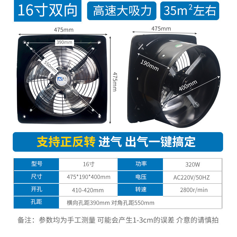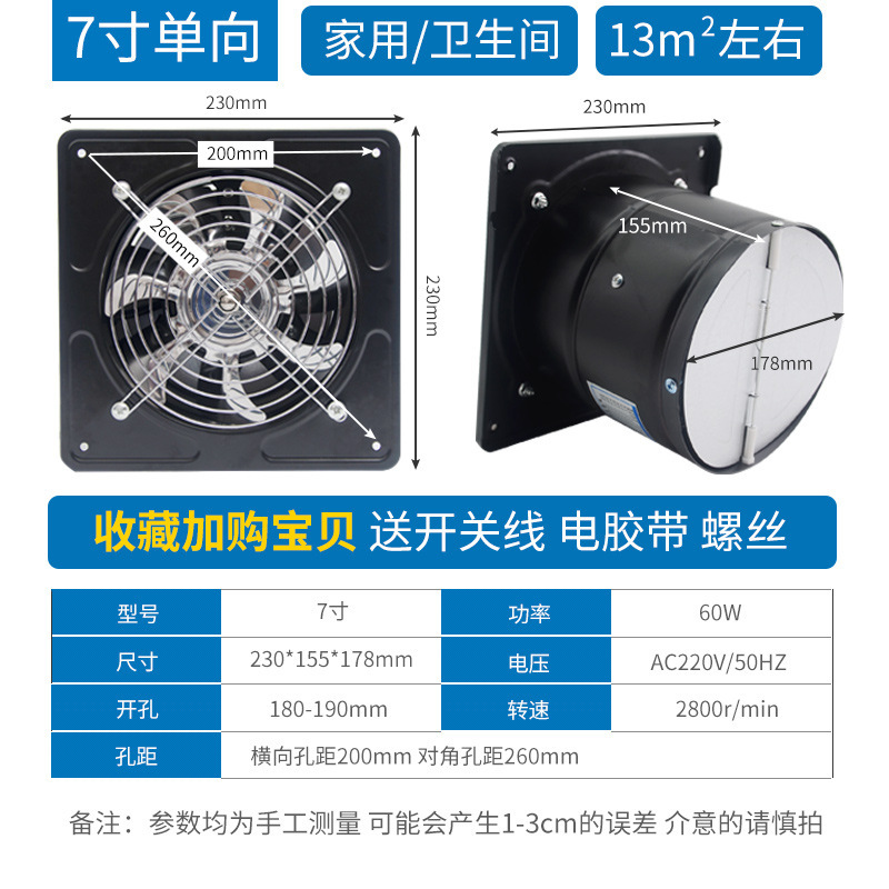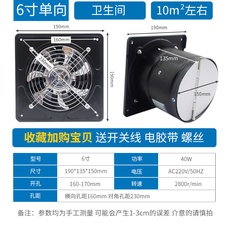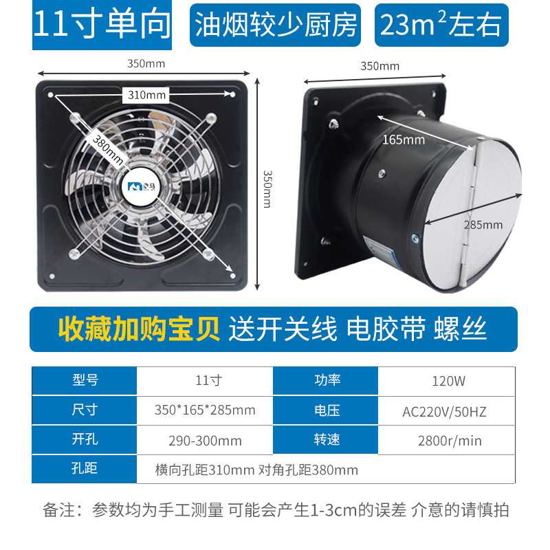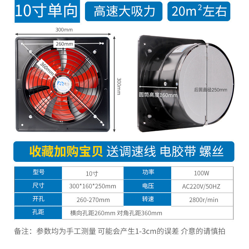 주방 흄 배기 팬 강력한 가정용 후드 배기 팬 환기 팬 농촌 흡연 팬