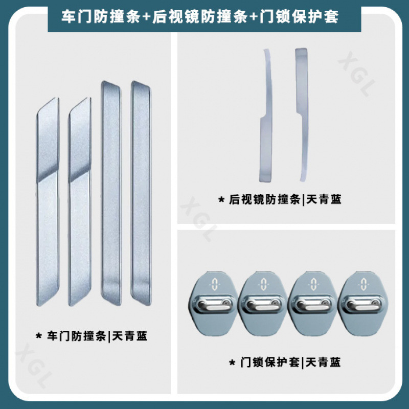 • 10개 3세트 [Azure Blue] 도어 충돌 방지 스트립 + 도어 잠금 장치 보호 커버 + 백미러 충돌 방지 스트립