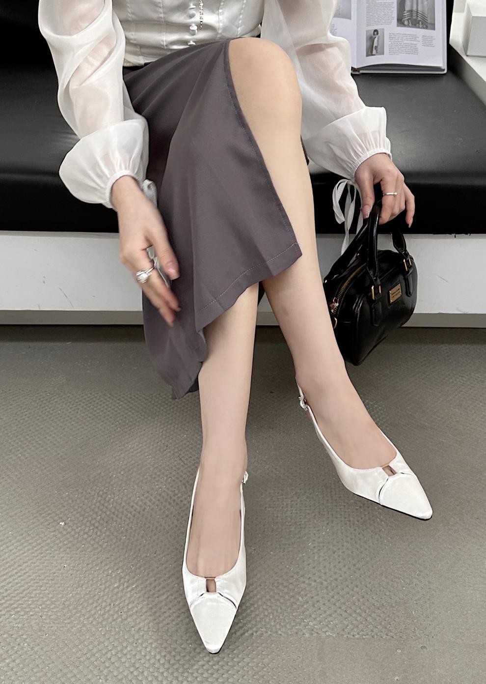 봄 2025 새로운 뾰족한 얇은 굽 하이힐 우아한 슬리밍 프랑스 세련된 감성 아름다운 탑 커버 여성 신발스토어 가기