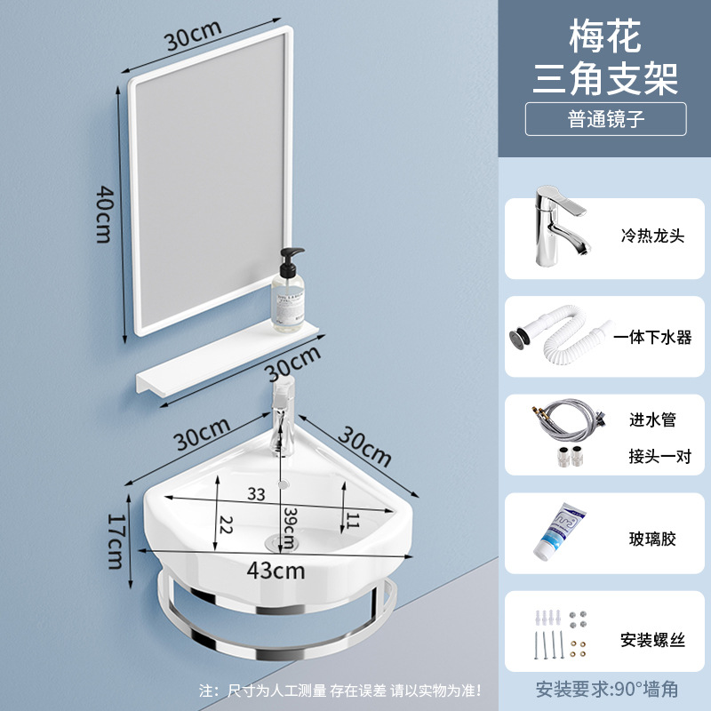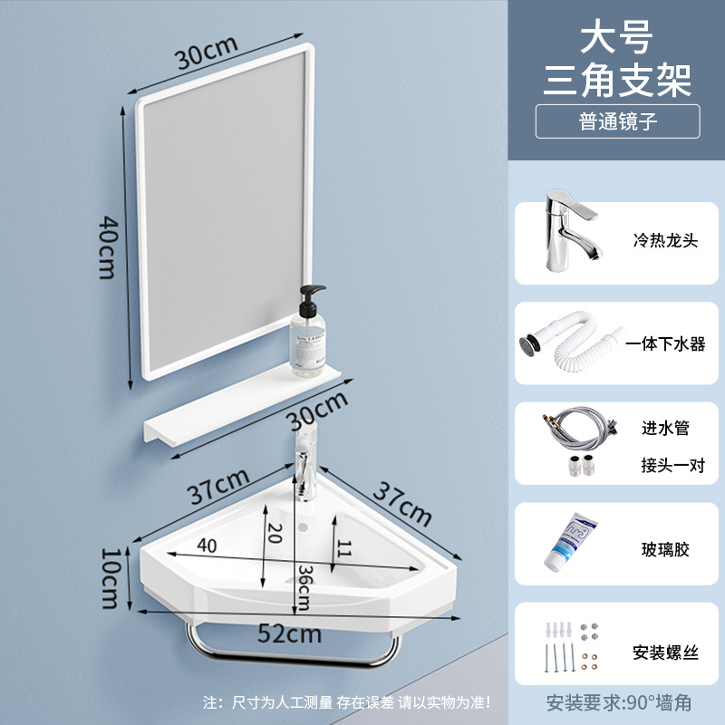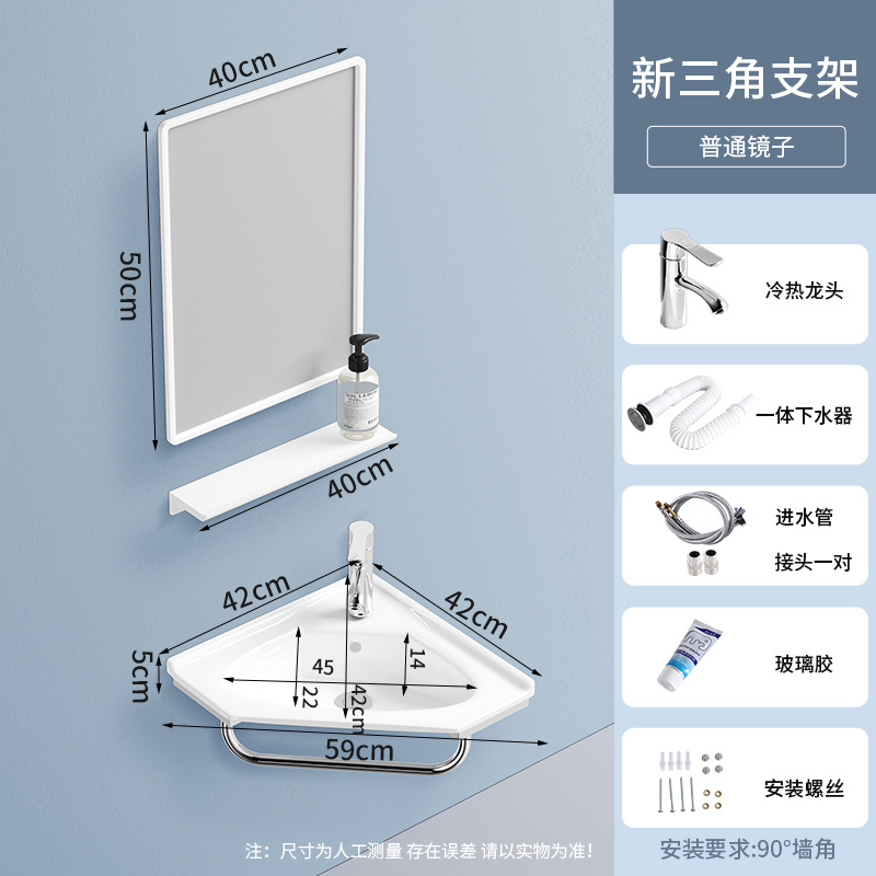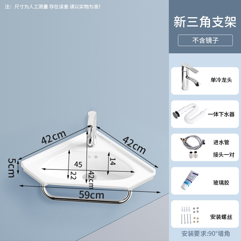 삼각형 분지 벽 코너 브래킷 세면기 작은 아파트 벽걸이 대형 코너 세라믹 워시 분지 팬 모양스토어 가기