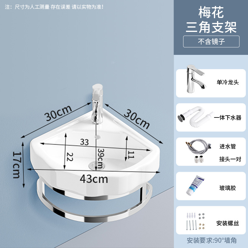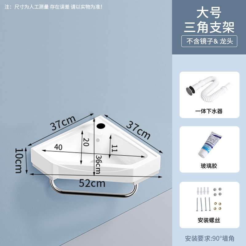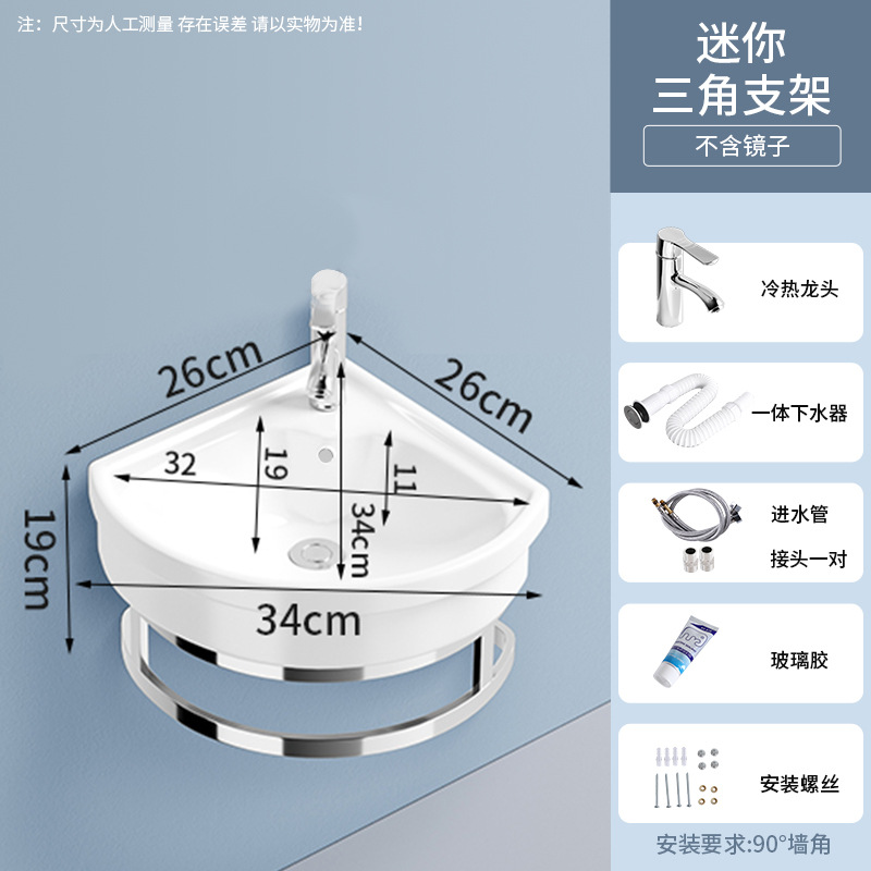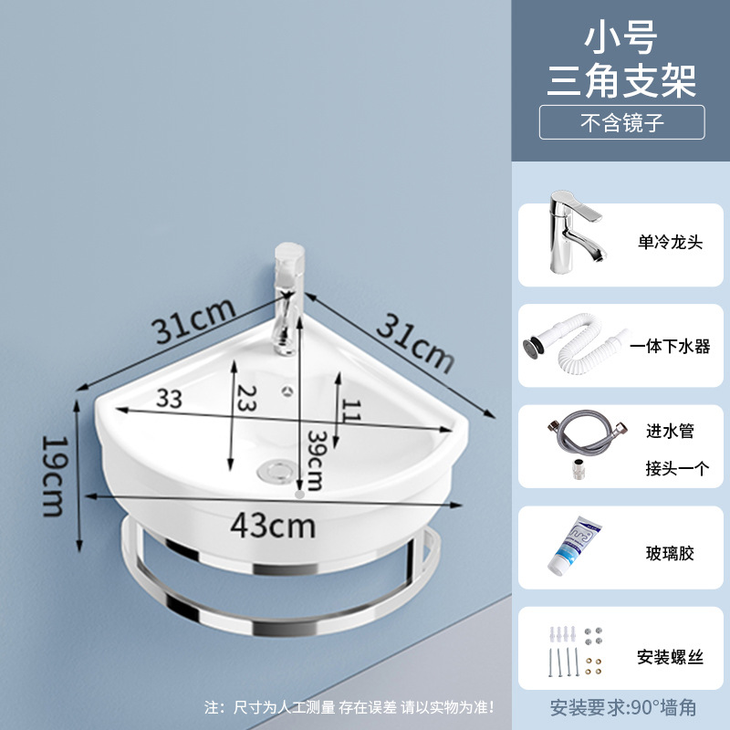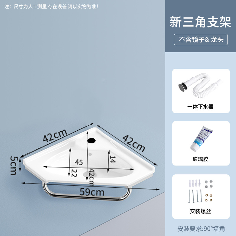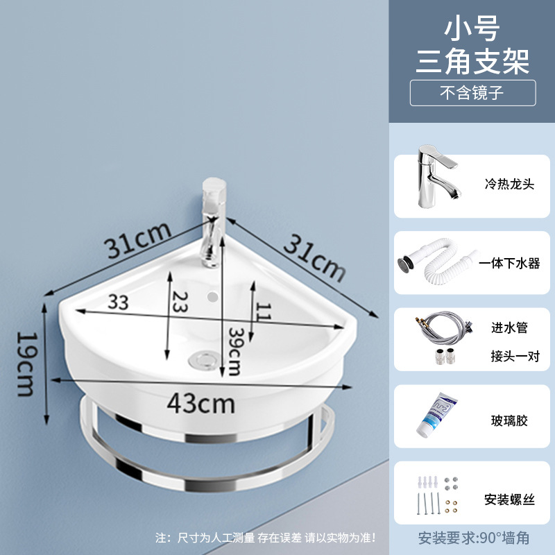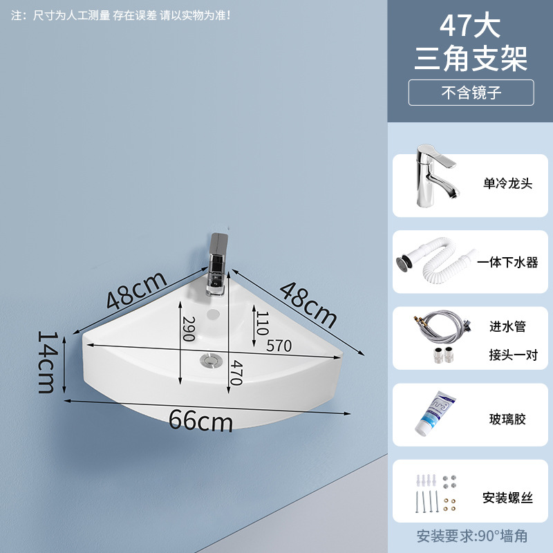 삼각형 분지 벽 코너 브래킷 세면기 작은 아파트 벽걸이 대형 코너 세라믹 워시 분지 팬 모양