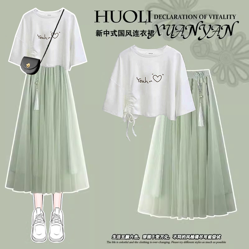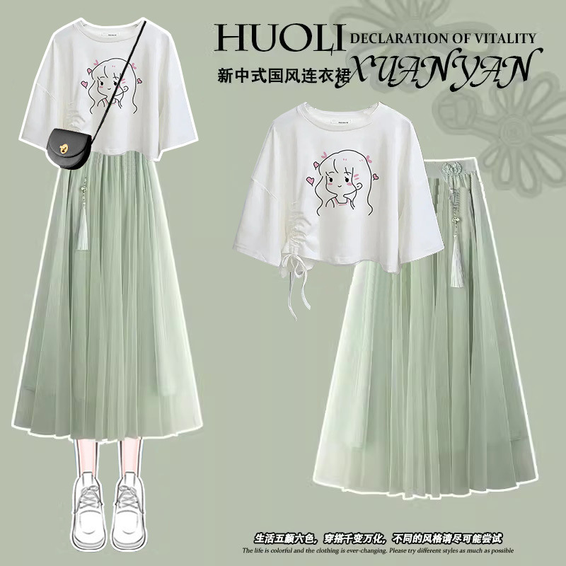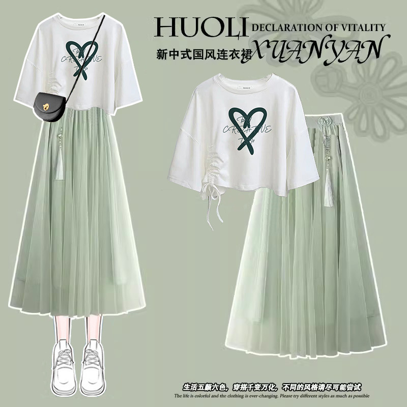 • 영어 티셔츠 + 중국식 거즈 스커트 8548#