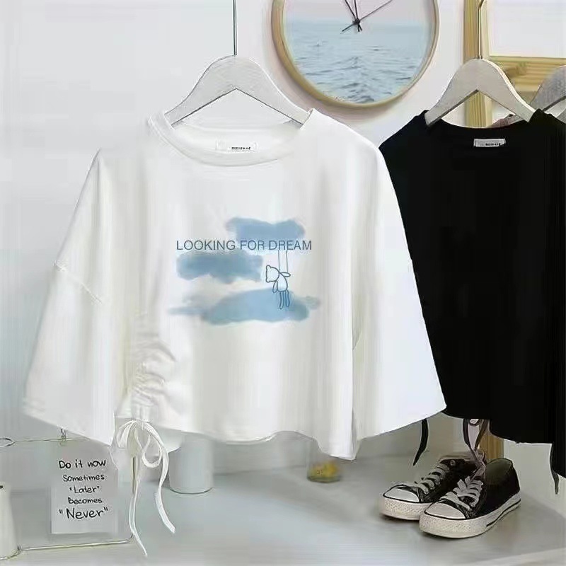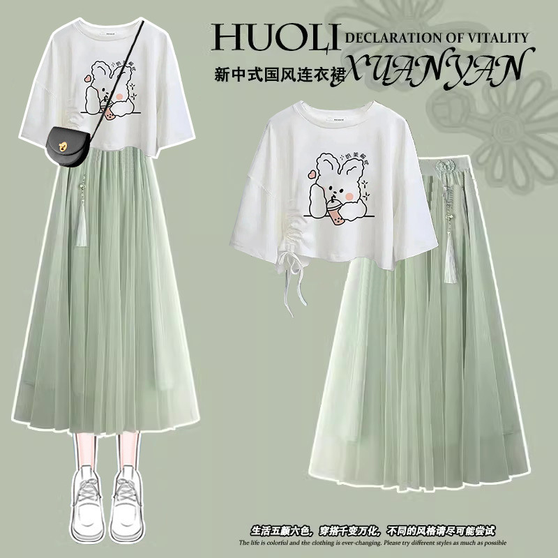 • 토끼 티셔츠 + 중국식 거즈 스커트 8548#