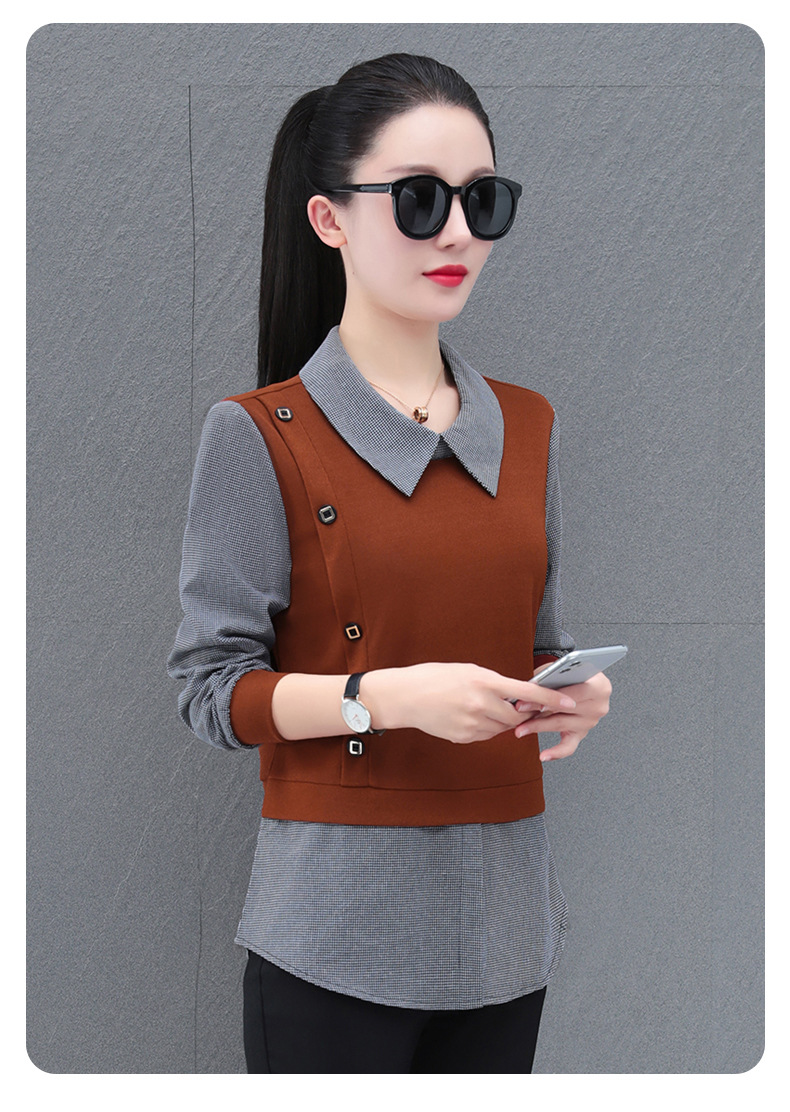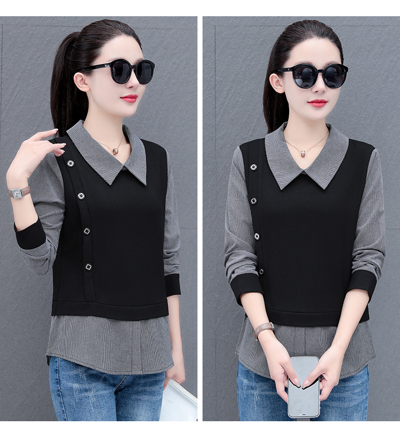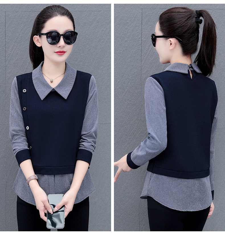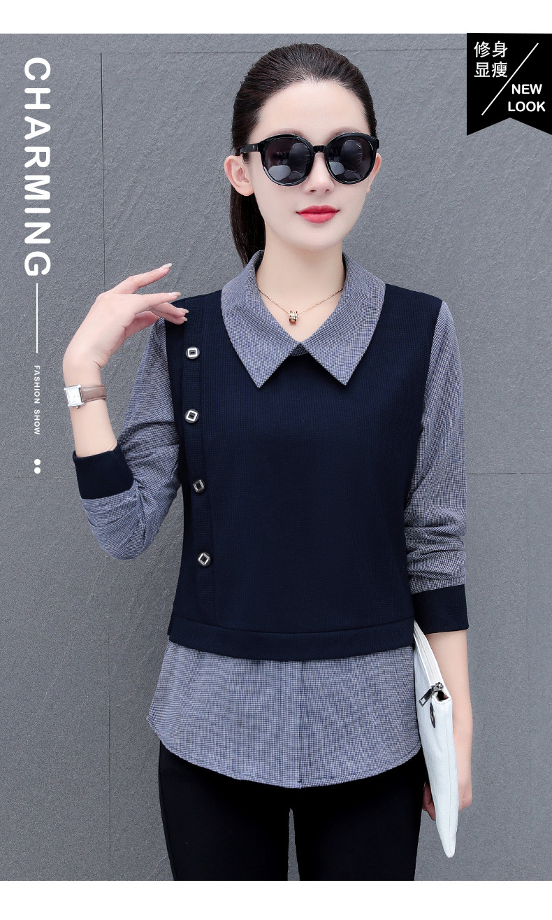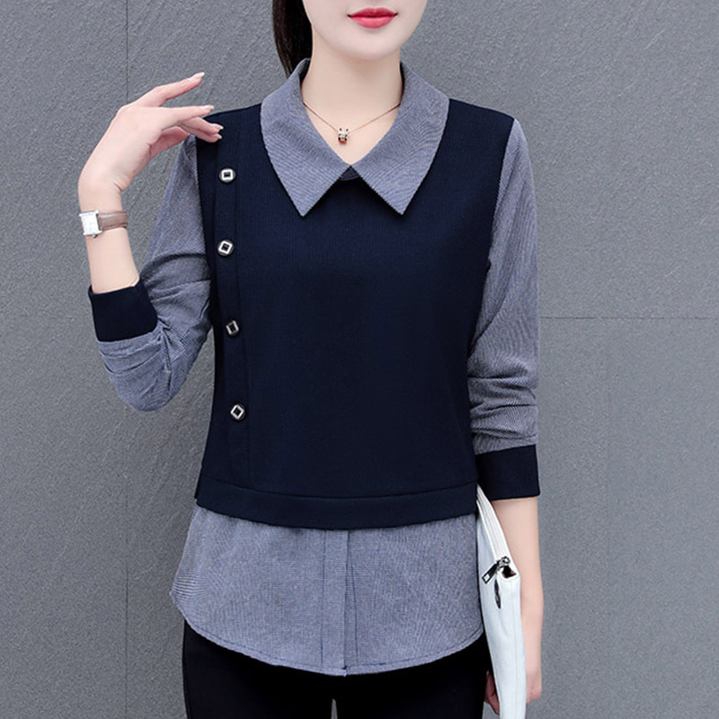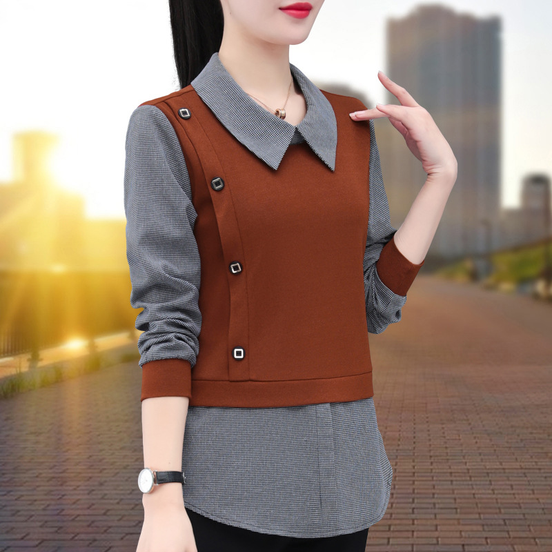 가짜 투피스 셔츠 여성용 긴팔 2024 봄과 가을 새로운 슬림 셔츠 우아한 작은 셔츠 패션 서양식 어머니의 탑