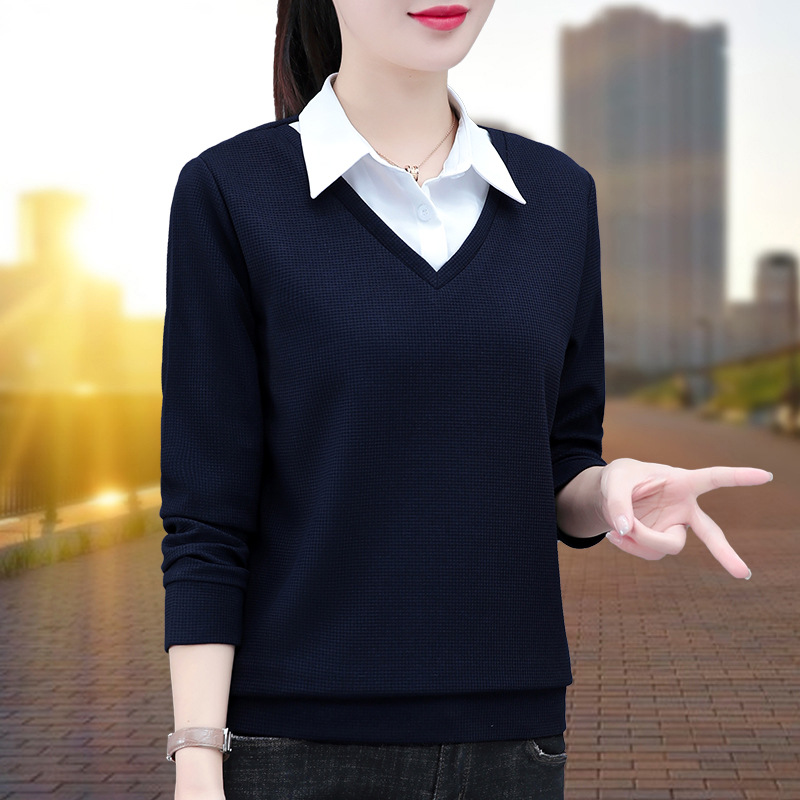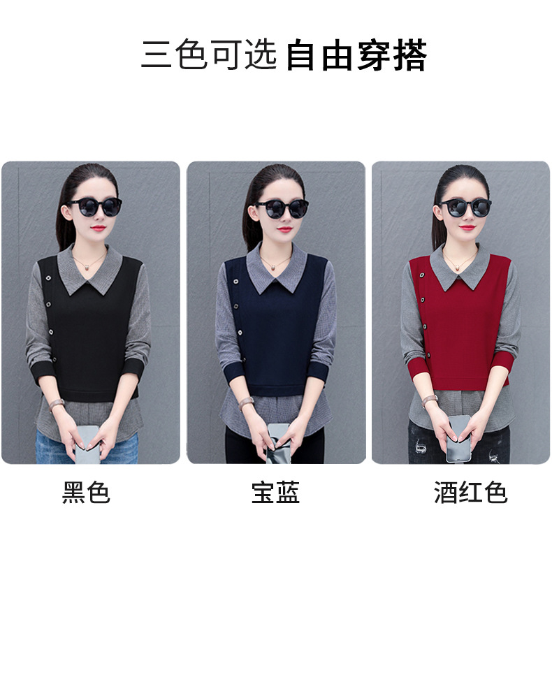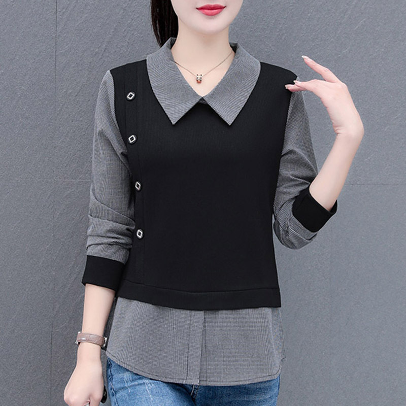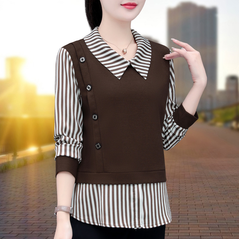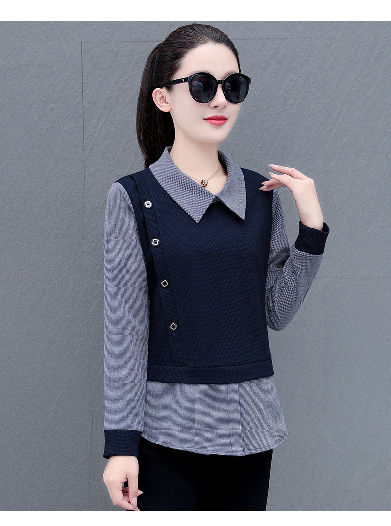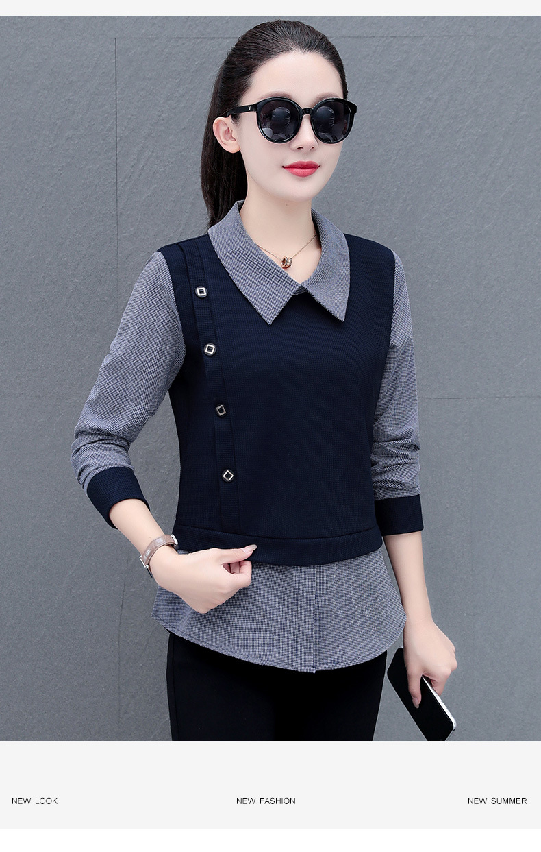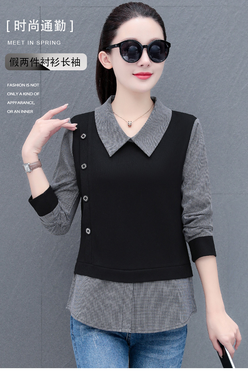 가짜 투피스 셔츠 여성용 긴팔 2024 봄과 가을 새로운 슬림 셔츠 우아한 작은 셔츠 패션 서양식 어머니의 탑