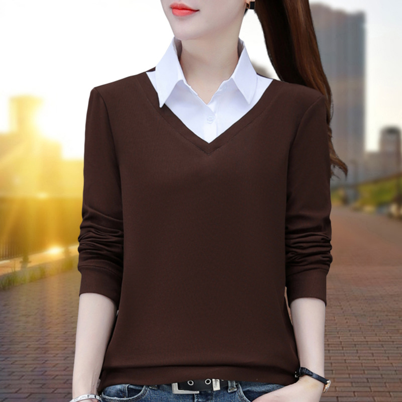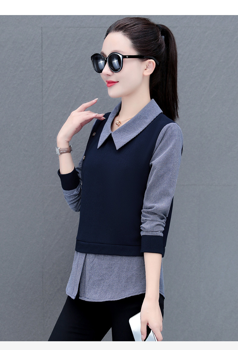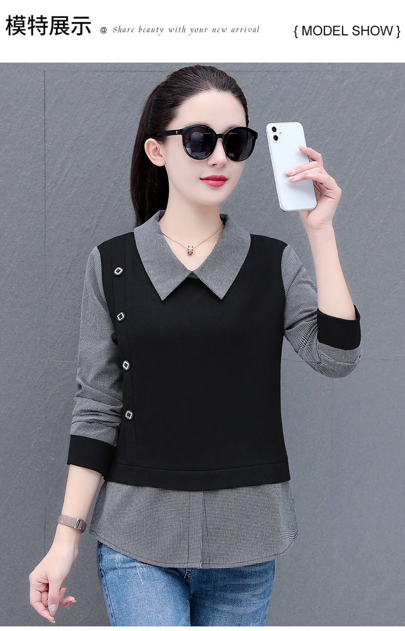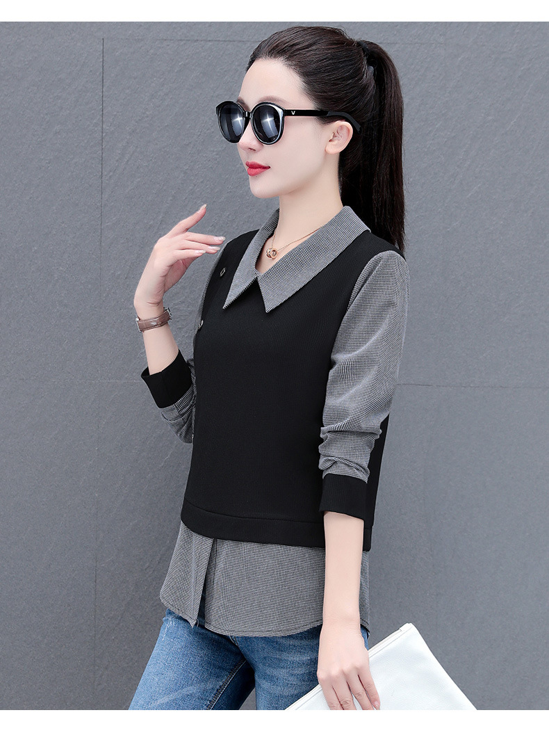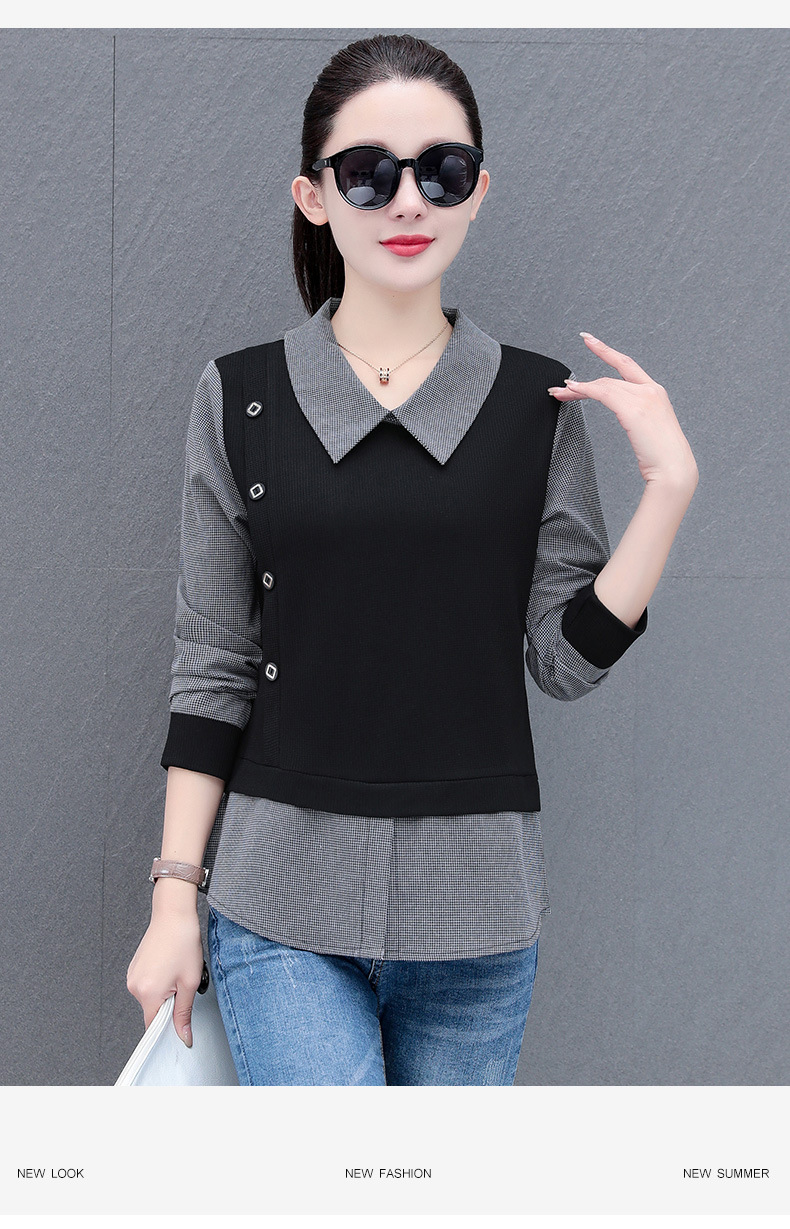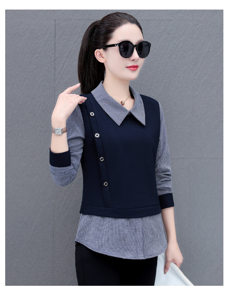 가짜 투피스 셔츠 여성용 긴팔 2024 봄과 가을 새로운 슬림 셔츠 우아한 작은 셔츠 패션 서양식 어머니의 탑