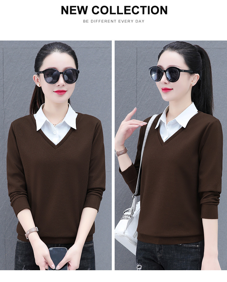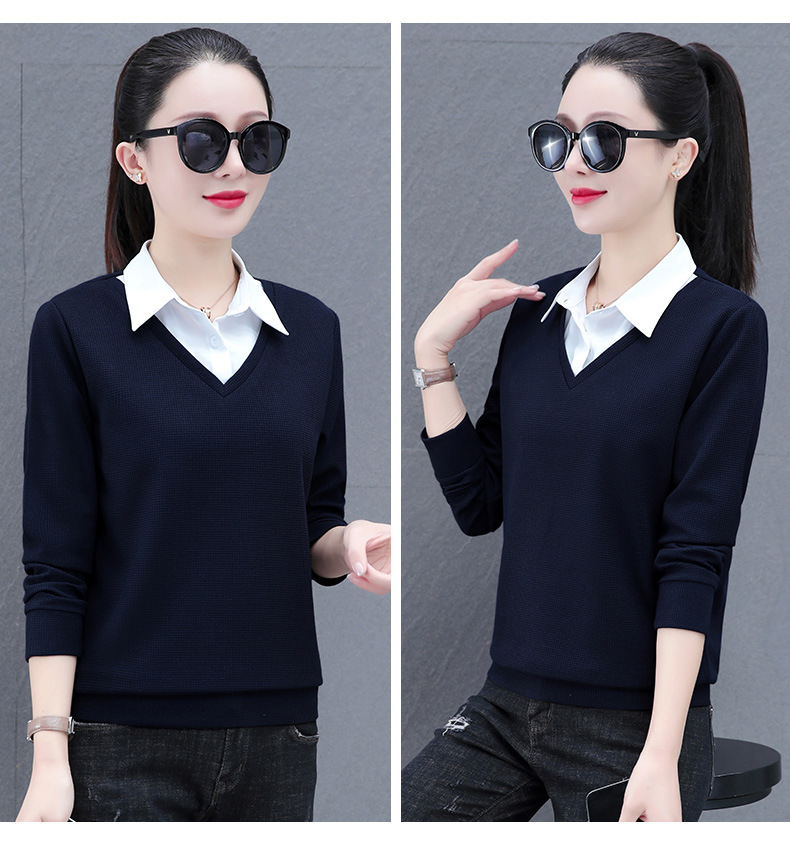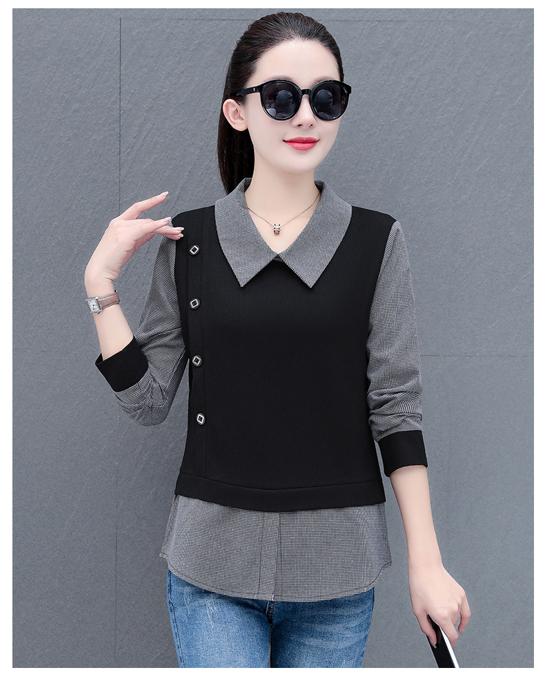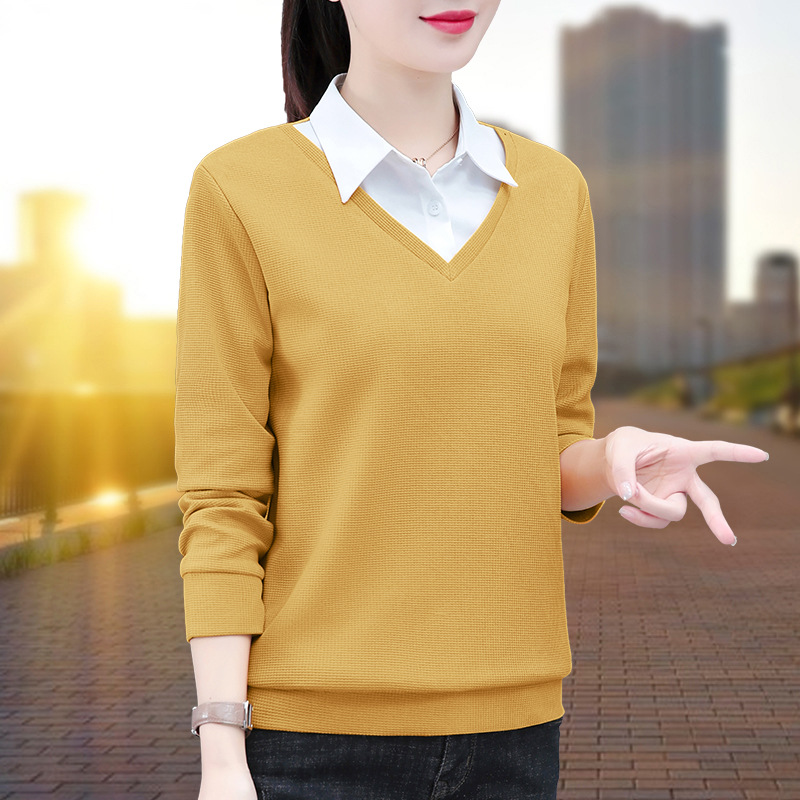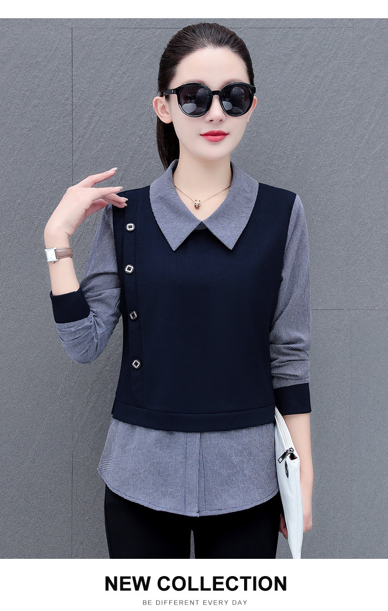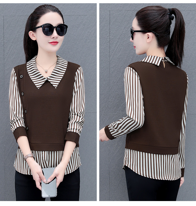 가짜 투피스 셔츠 여성용 긴팔 2024 봄과 가을 새로운 슬림 셔츠 우아한 작은 셔츠 패션 서양식 어머니의 탑