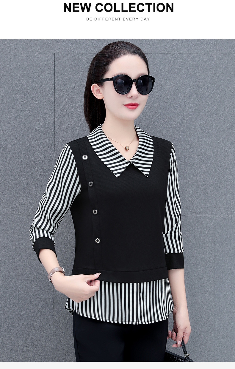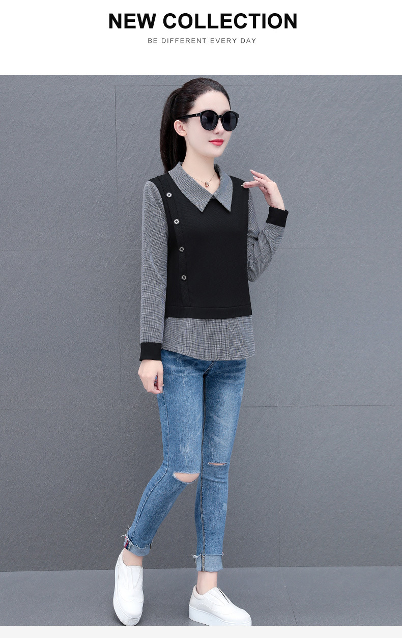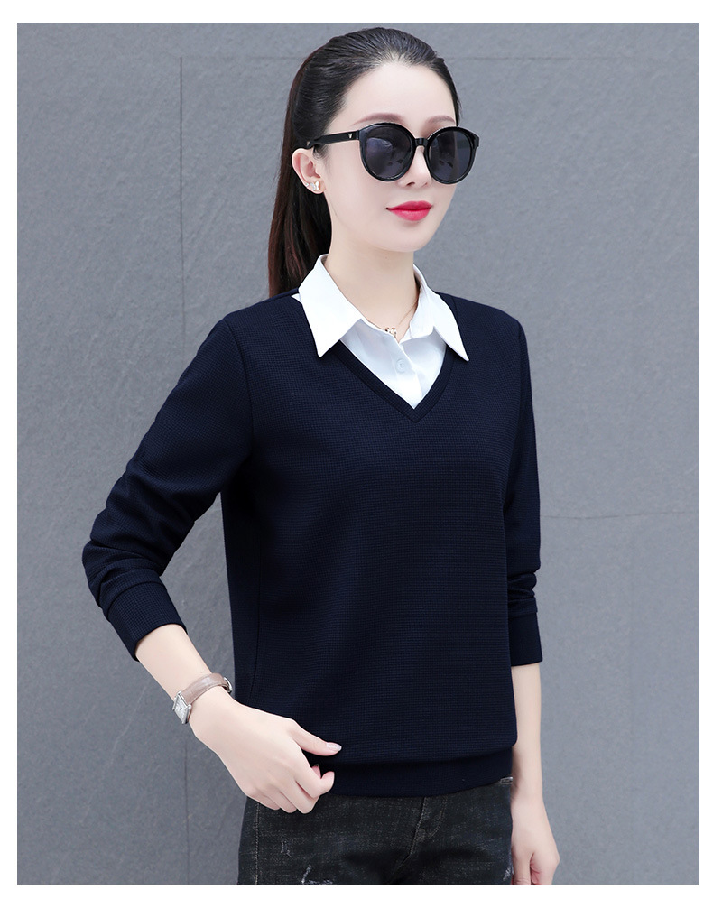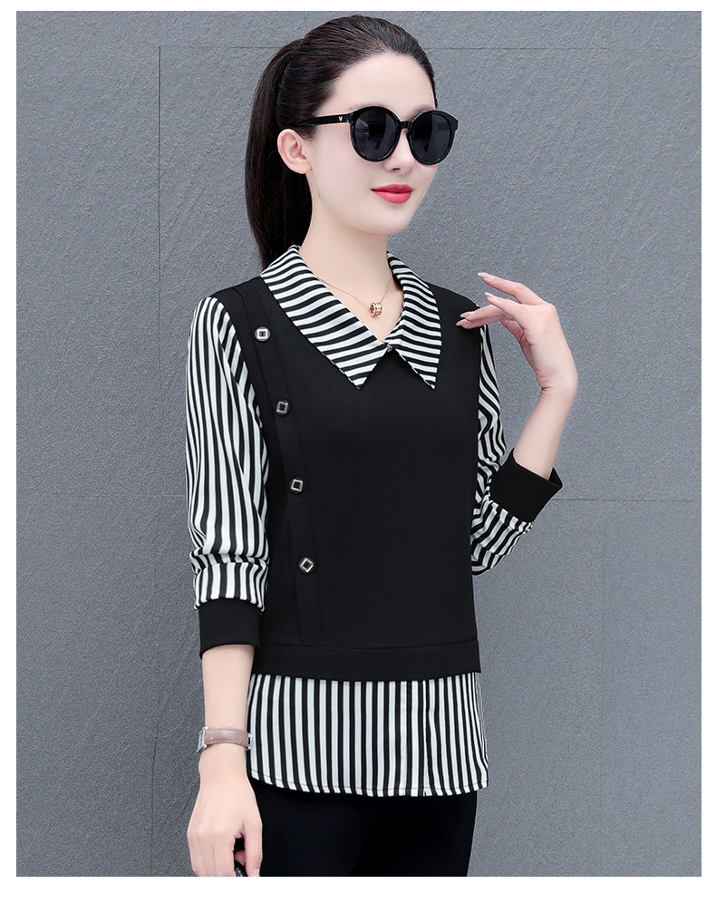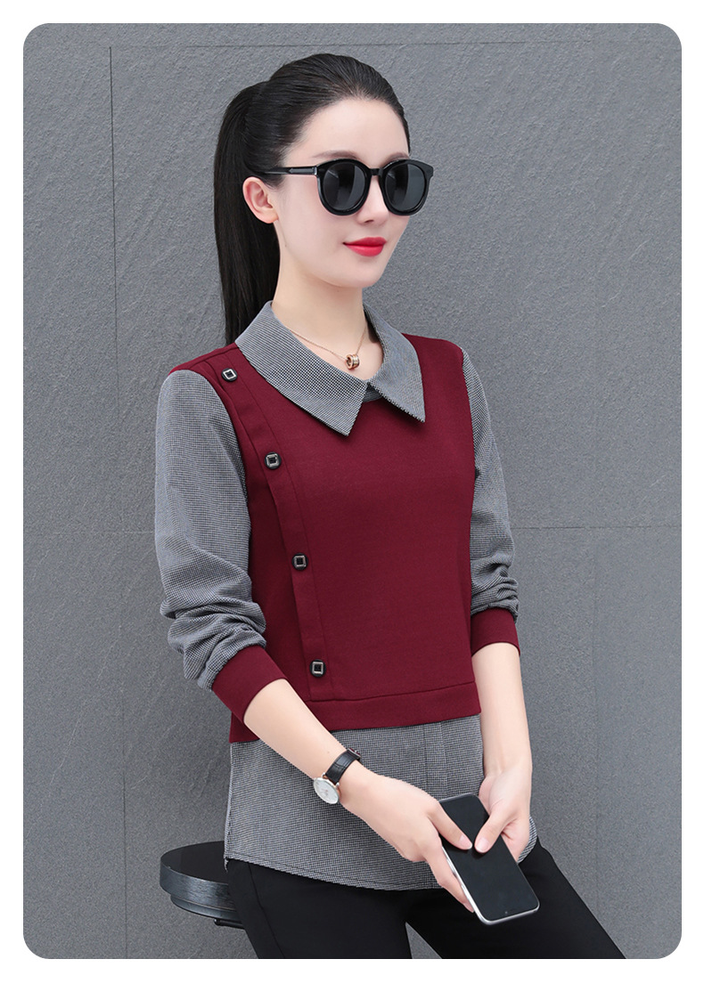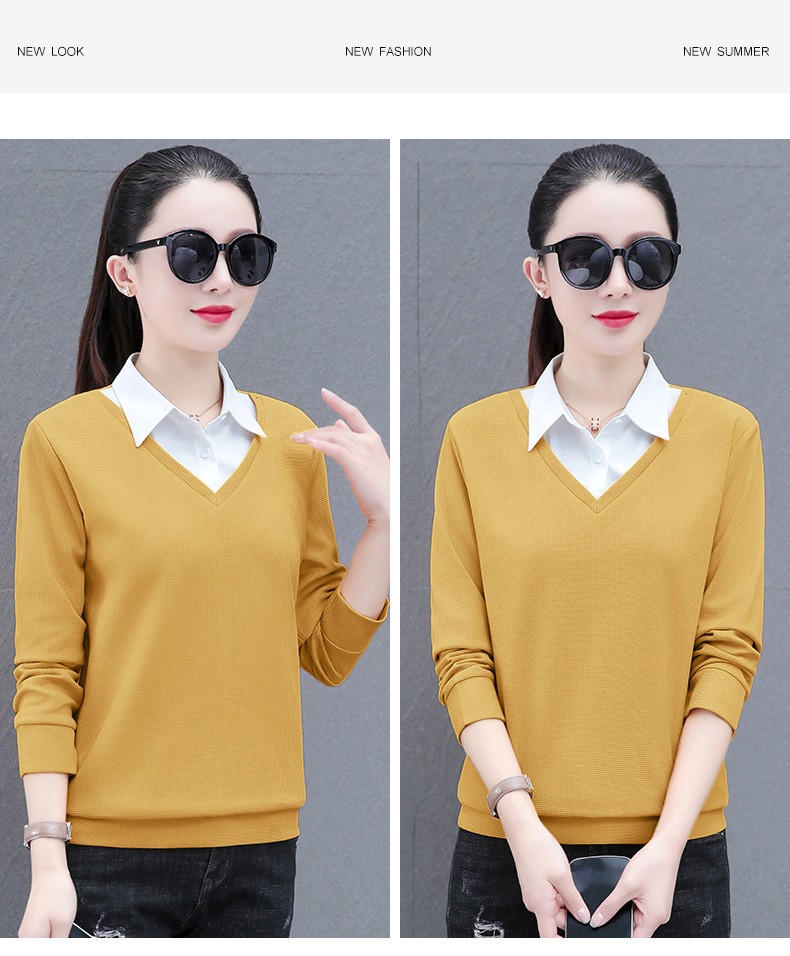 가짜 투피스 셔츠 여성용 긴팔 2024 봄과 가을 새로운 슬림 셔츠 우아한 작은 셔츠 패션 서양식 어머니의 탑