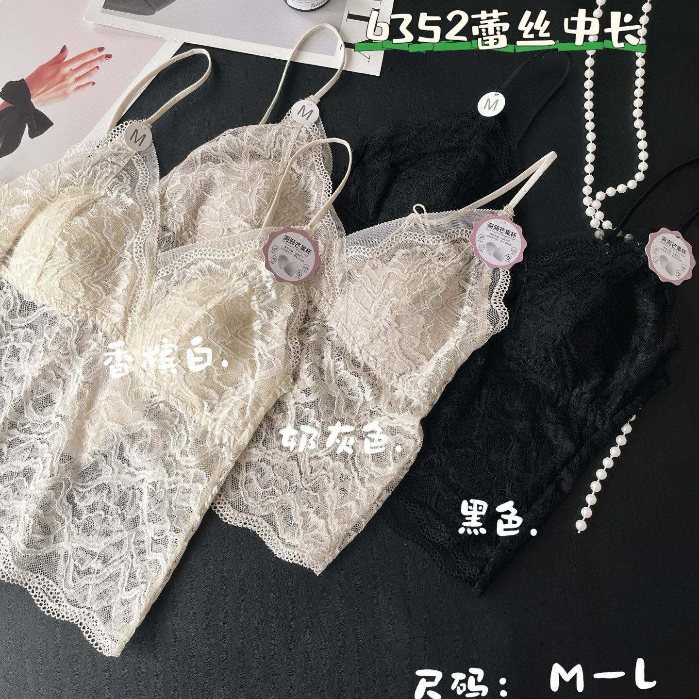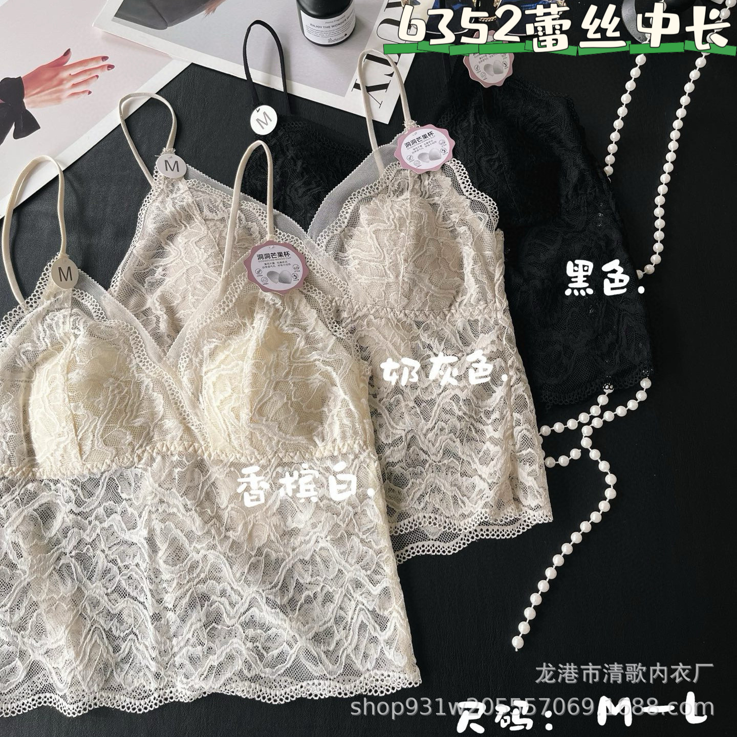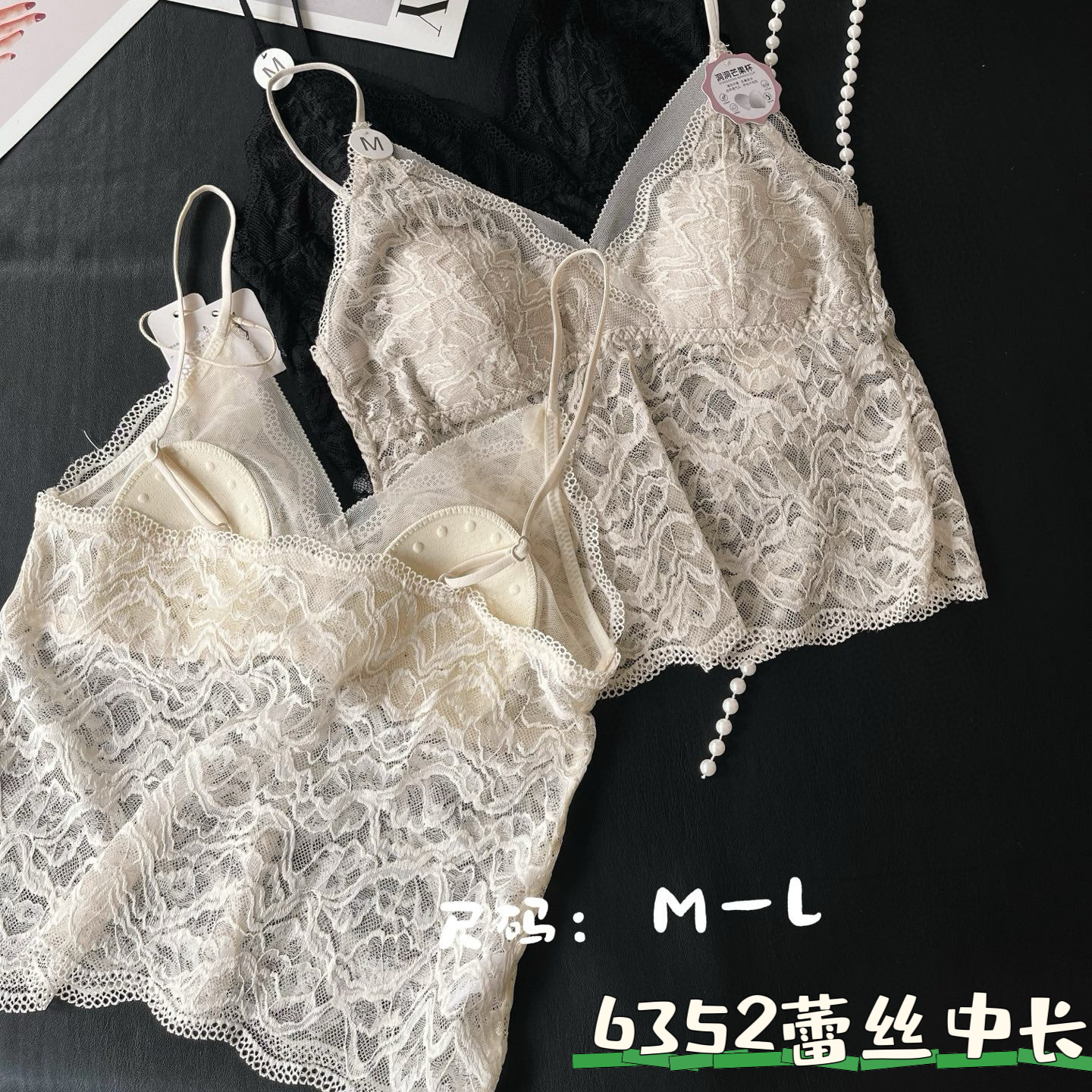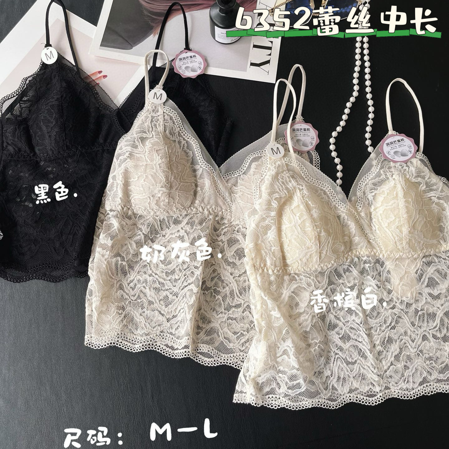 6352 고정컵 프렌치 풀 레이스 미디엄 롱 슬립탑 브이넥 얇은 끈 섹시하고 다재다능한 여성 속옷스토어 가기