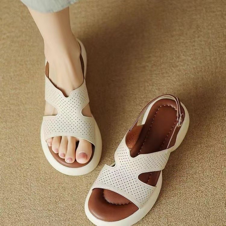 예술적 레트로 굵은 하이힐 포스트 믹스 샌들 노출 된 발가락 싱글 레이어 신발 여성 신발 2025 여름 새로운 올 매치 하이힐 신발스토어 가기