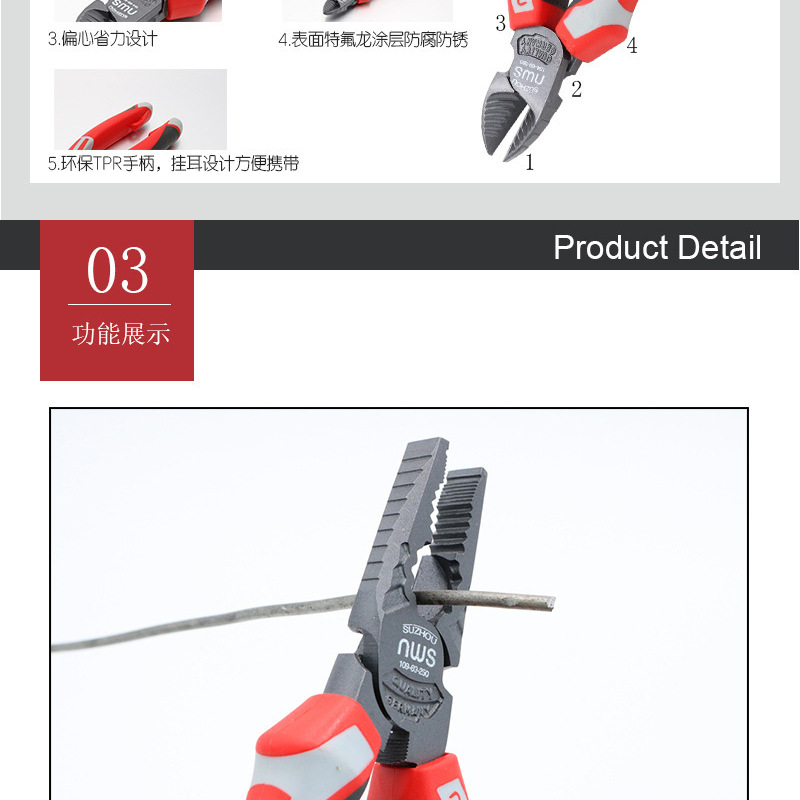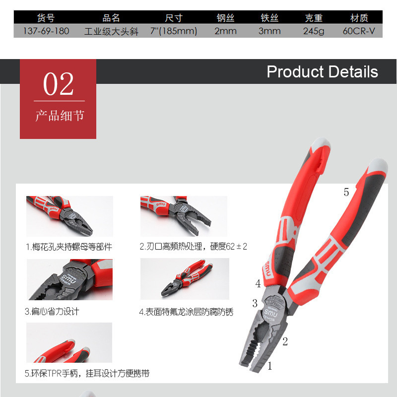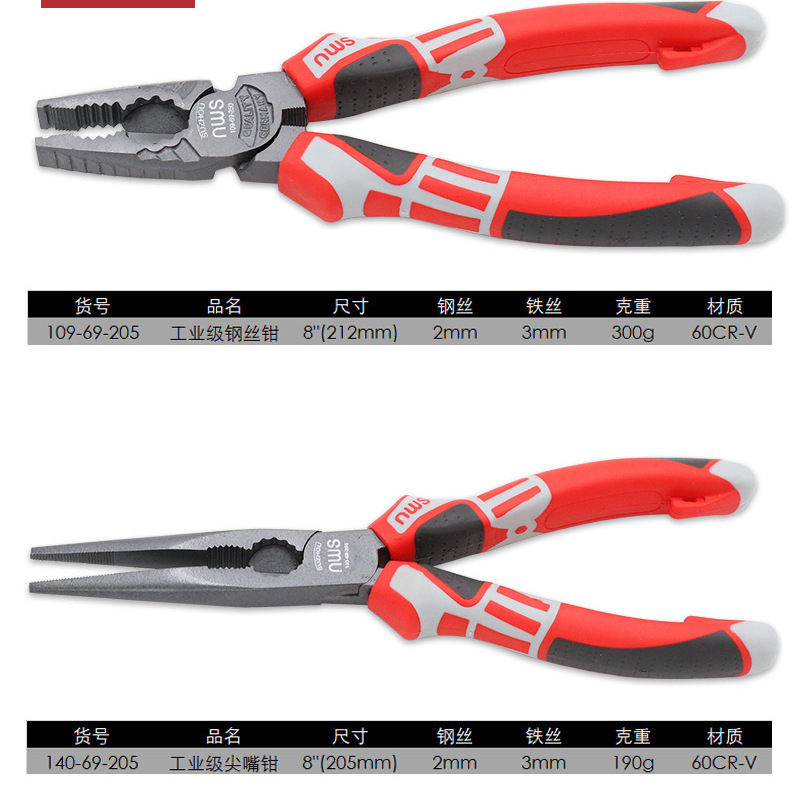 독일 산업 등급 편심 와이어 펜치 크롬 바나듐 강철 뾰족한 코 펜치 대각선 펜치 큰 머리 비스듬한 호랑이 펜치 전기 펜치