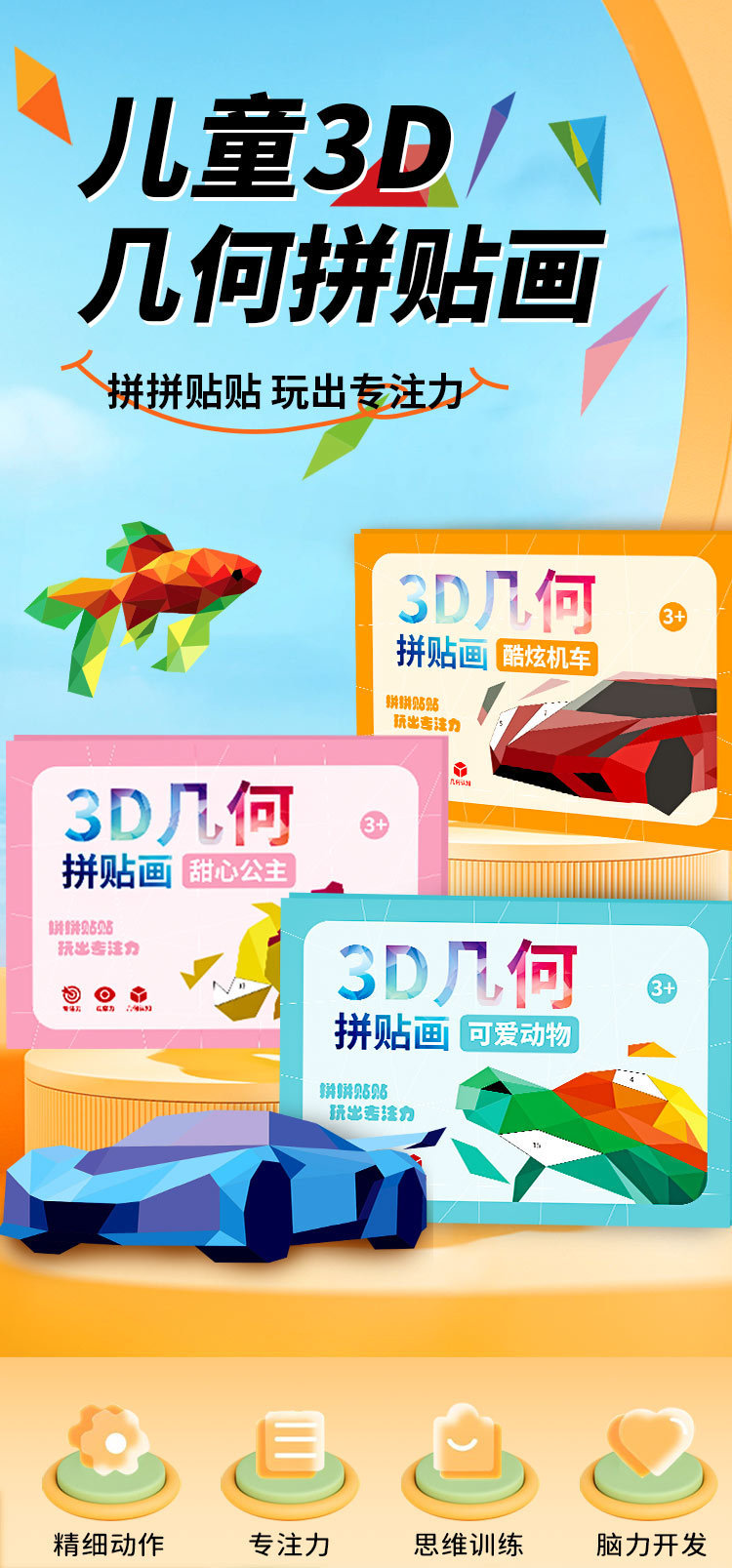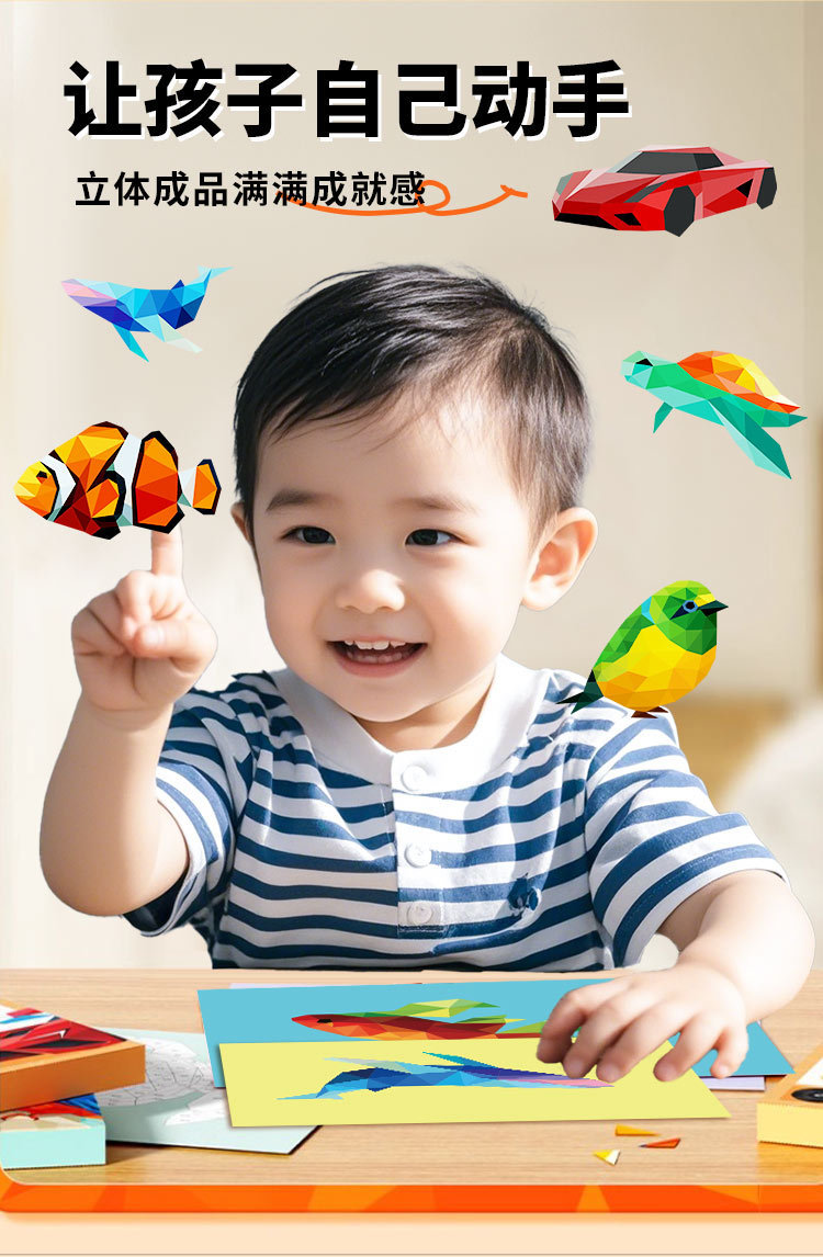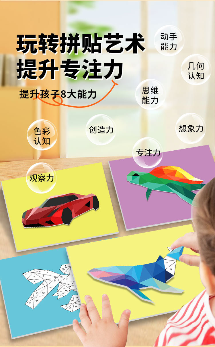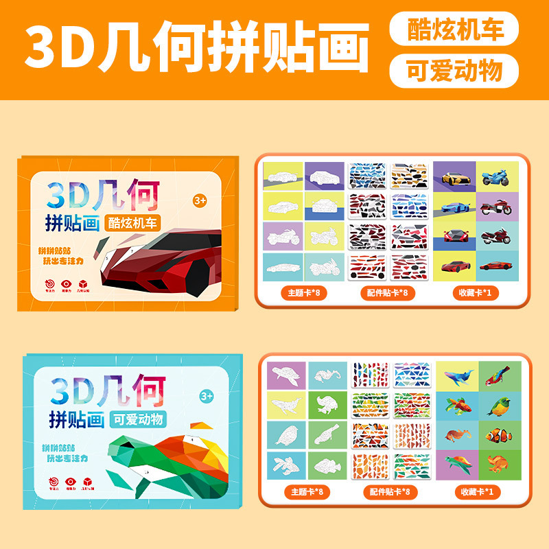 어린이 수제 3D 기하학적 콜라주 어린이 교육 장난감 DIY 스티커 조기 교육 깨달음 집중스토어 가기