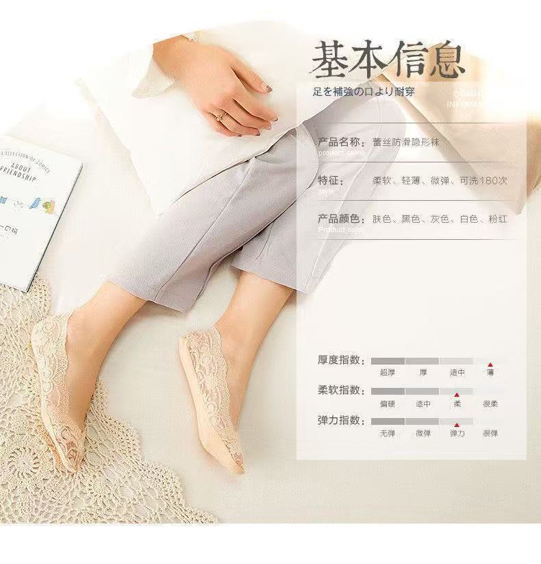 여자 레이스 보트 양말 봄 여름과 가을 초박형 여성용 양말 실리콘 안티 오프 스케이팅 실크 높은 탄성 편안한 코튼 바닥 전체 보이지 않음스토어 가기