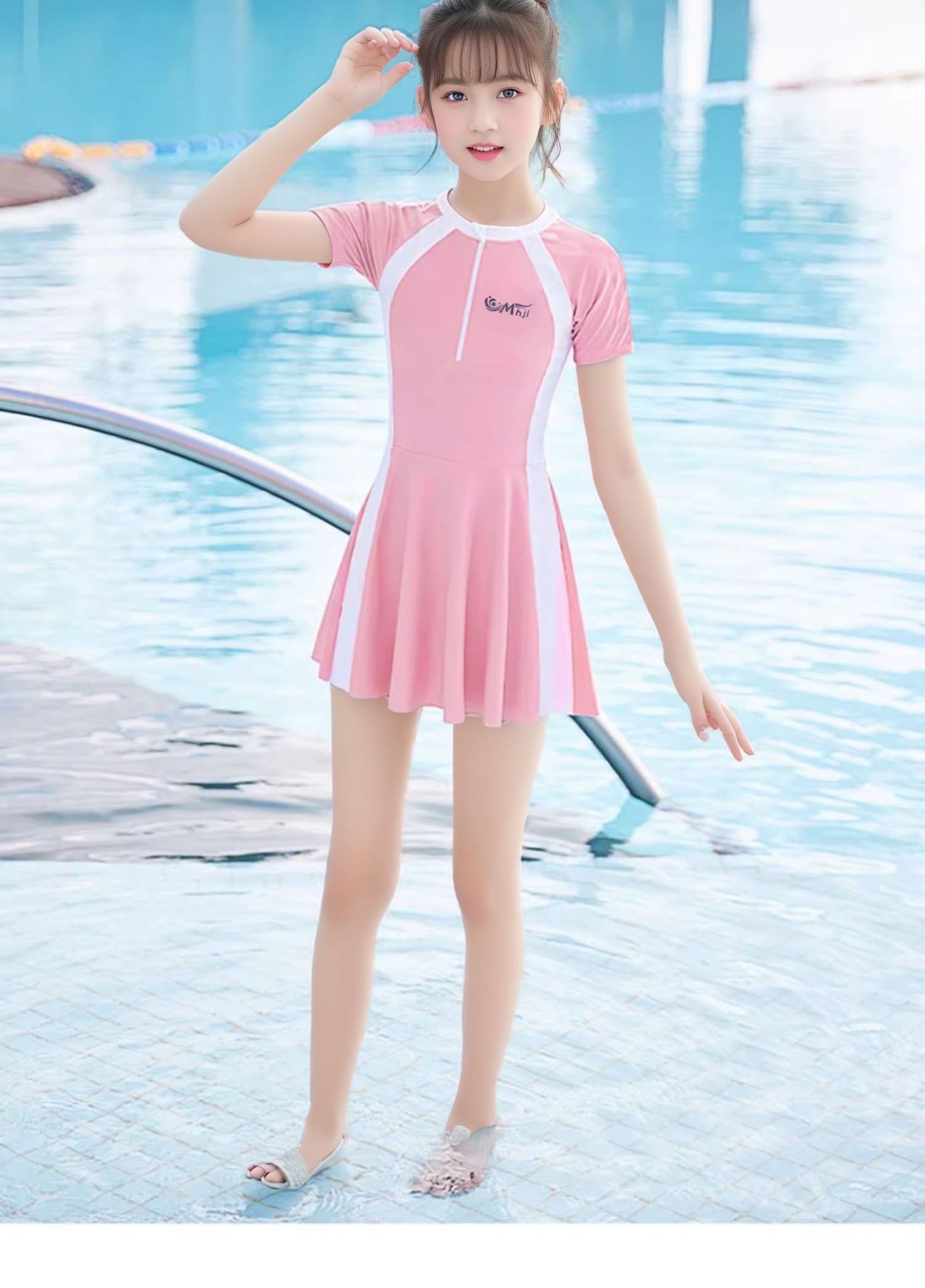 어린이 수영복 소녀 2025 새로운 소형, 중형 및 대형 어린이 소녀 학생 중학교 부모-자식 공주 원피스 수영복