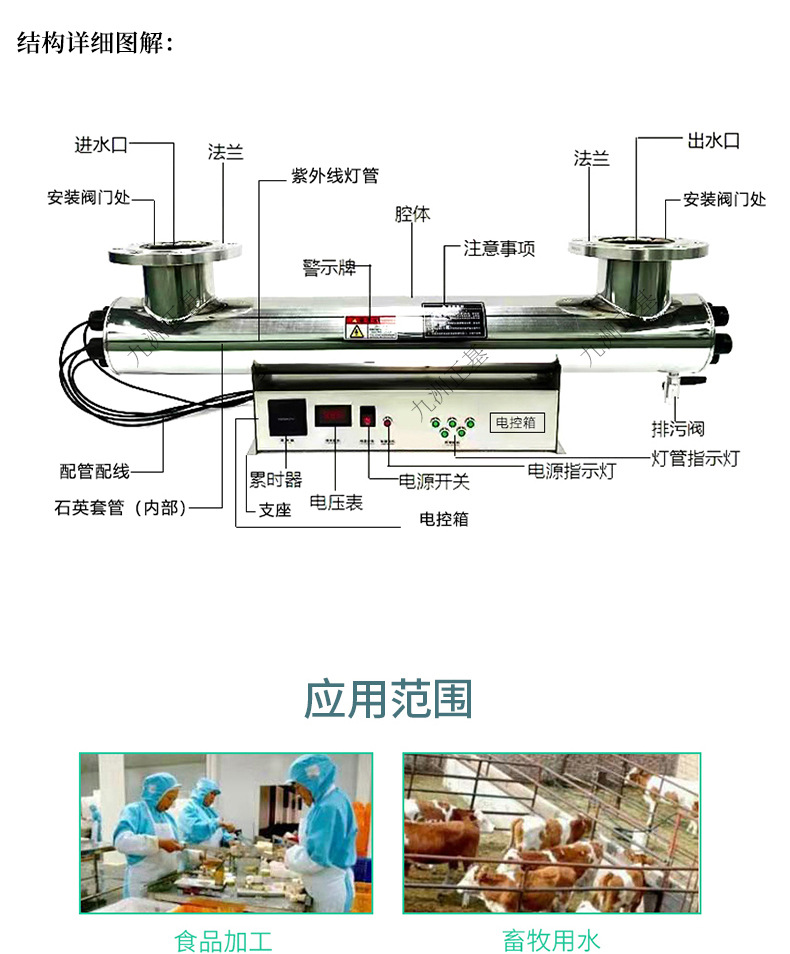 자외선 소독기 오버플로우 파이프라인 양식장 수영장 물 살균 원수 소독 하수 처리스토어 가기