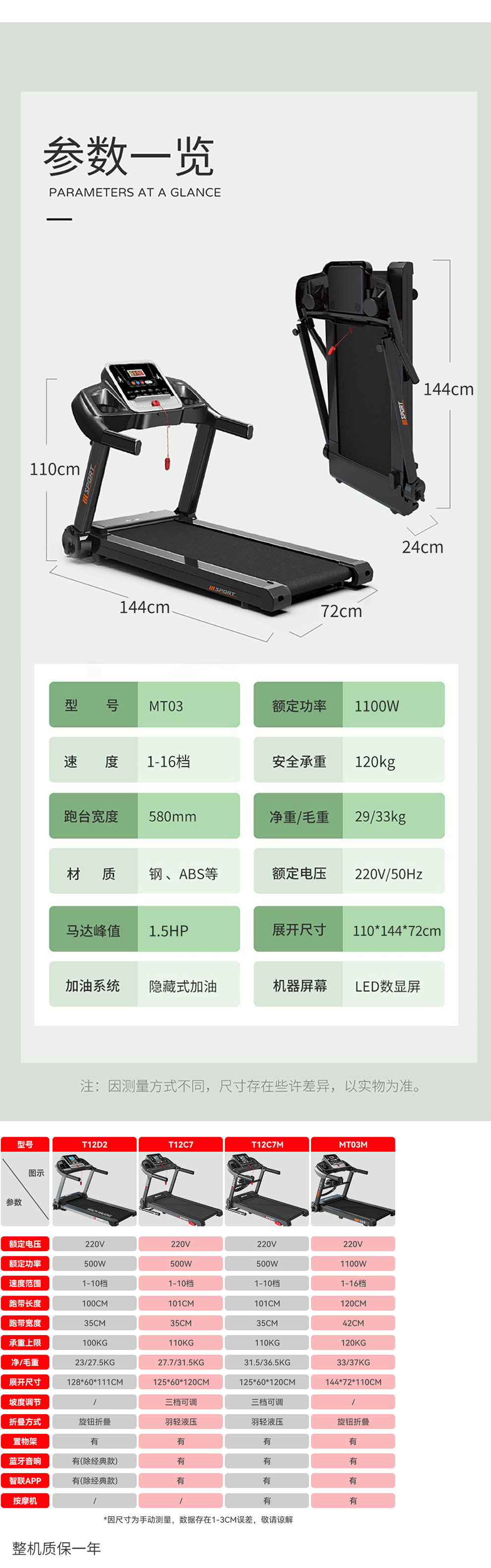 • 58CM 런닝머신丨 120kg 베어링丨 손잡이 접기/블루투스 없음