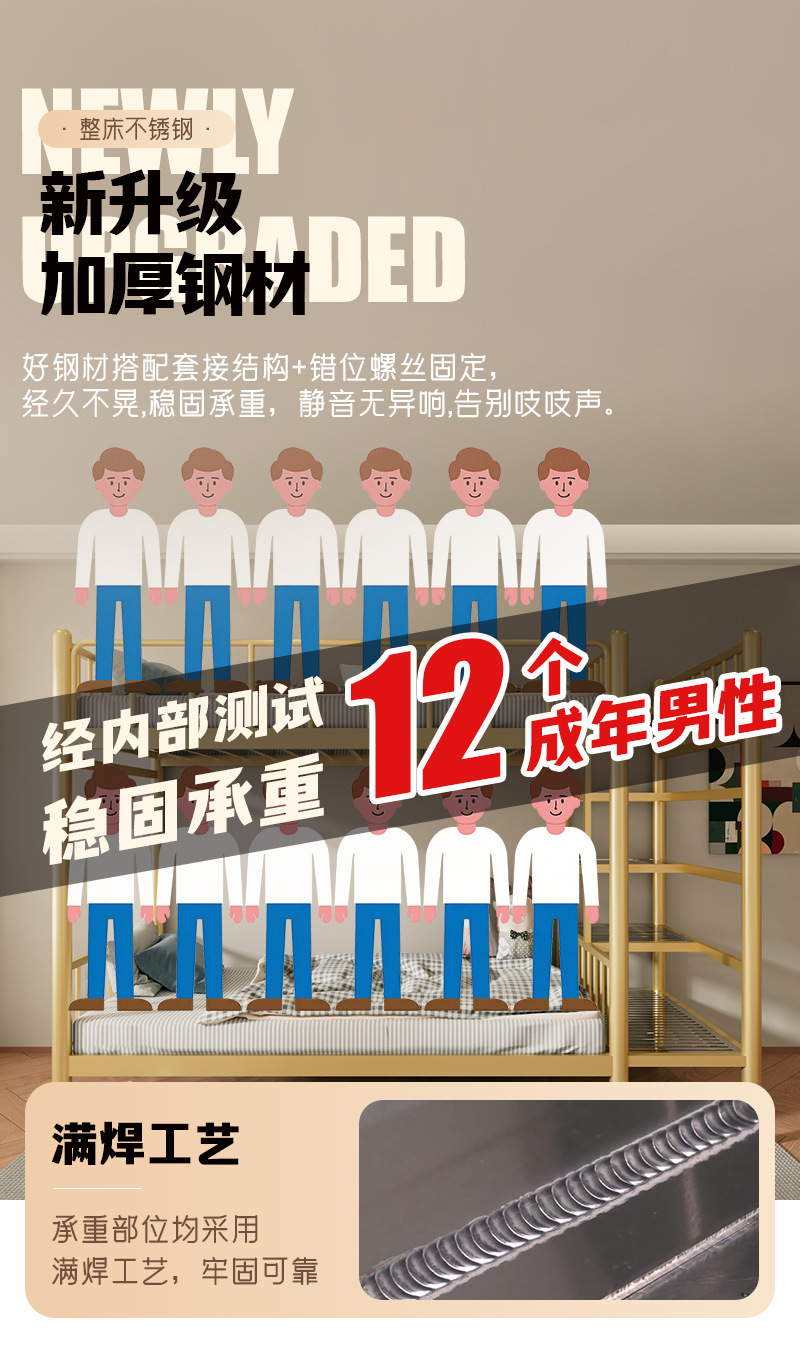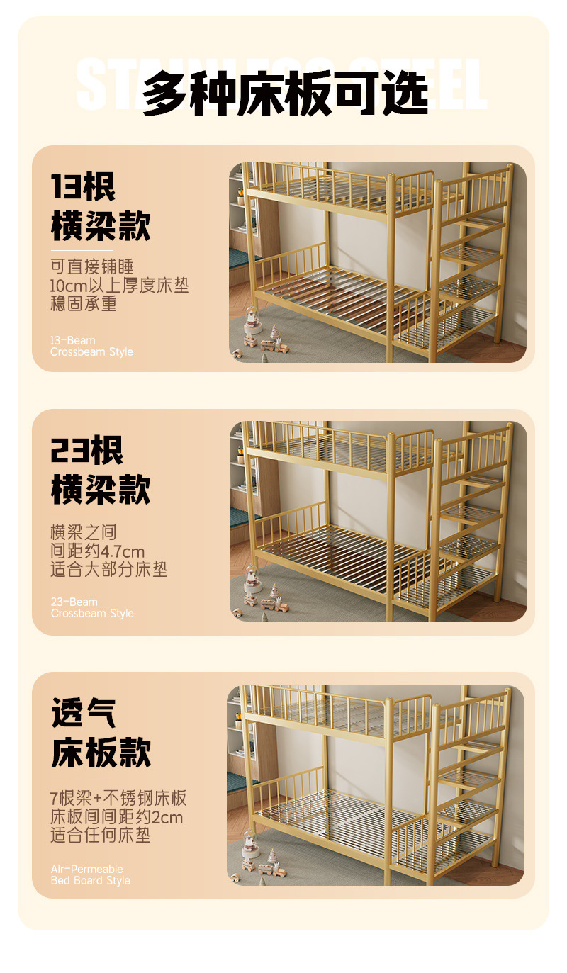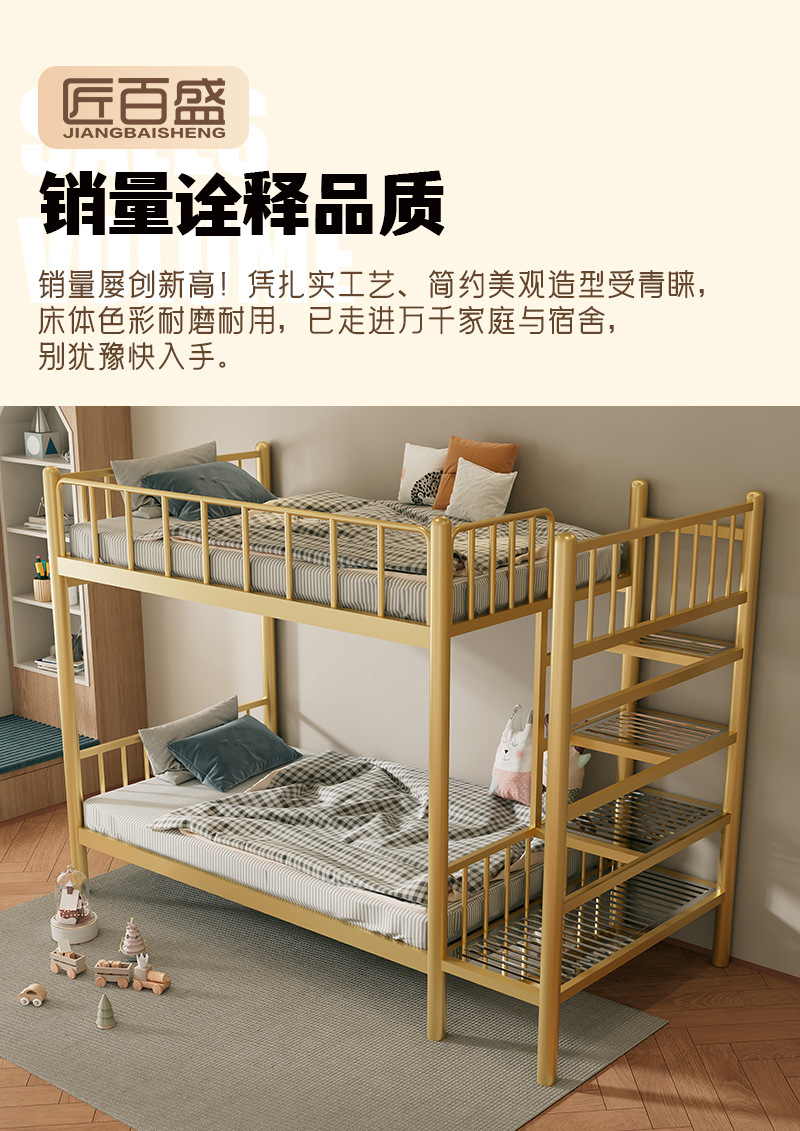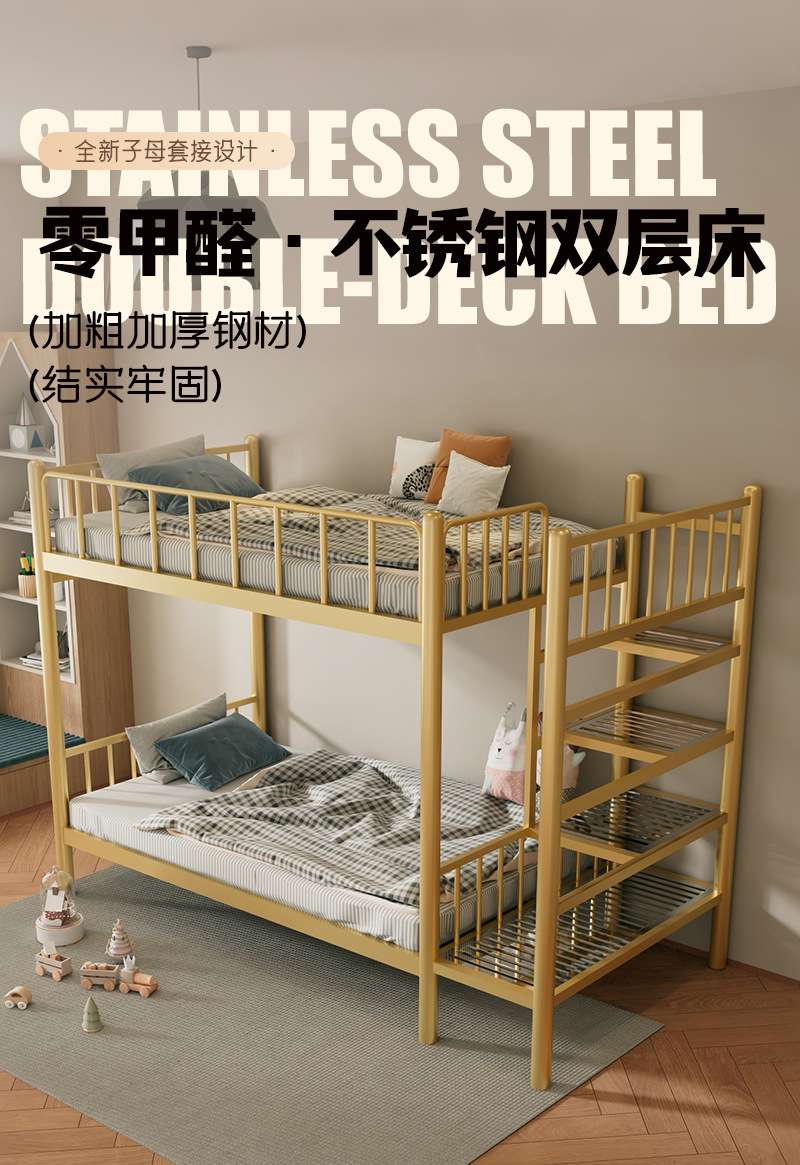 두꺼운 스테인레스 스틸 벙크 침대 계단 사다리 철공 침대 어린이 방 학생 기숙사 높고 낮은 침대스토어 가기