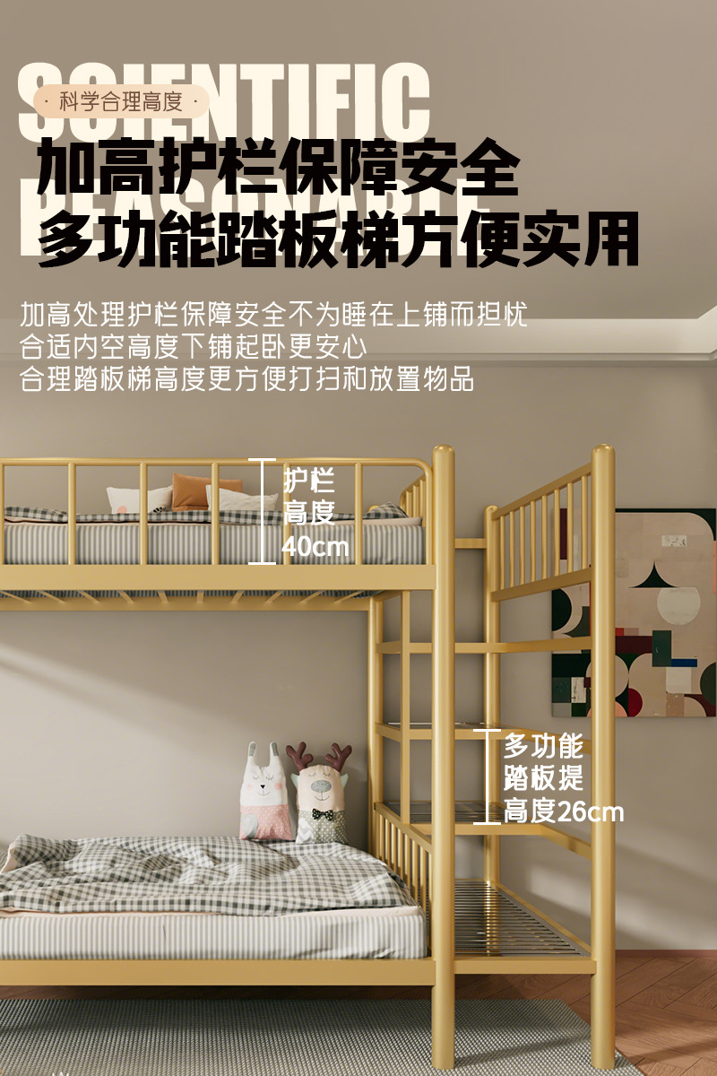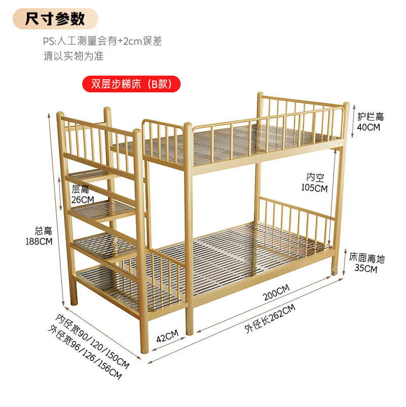 두꺼운 스테인레스 스틸 벙크 침대 계단 사다리 철공 침대 어린이 방 학생 기숙사 높고 낮은 침대