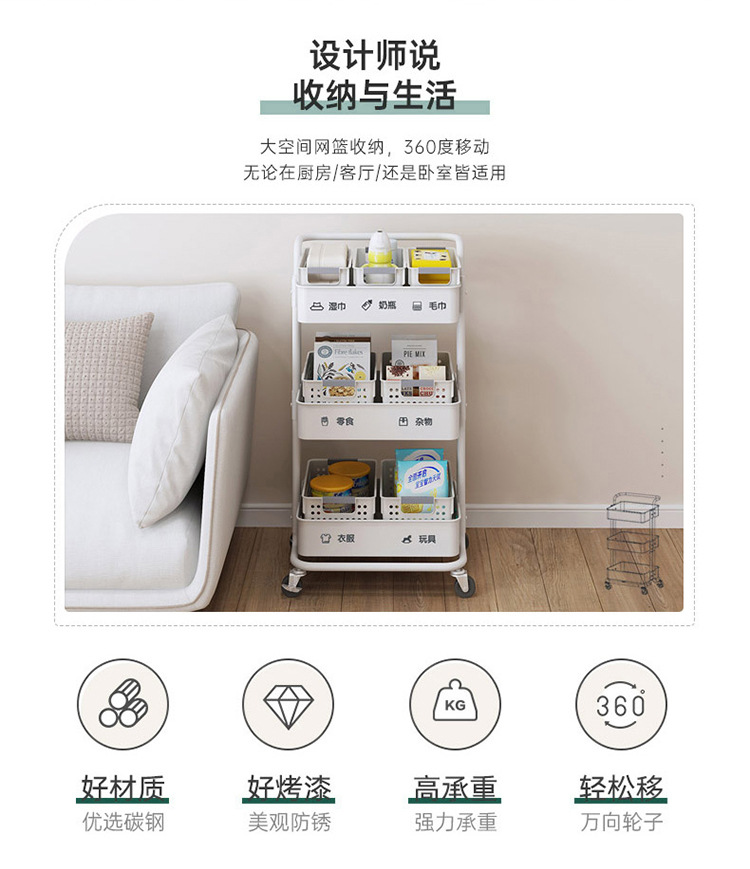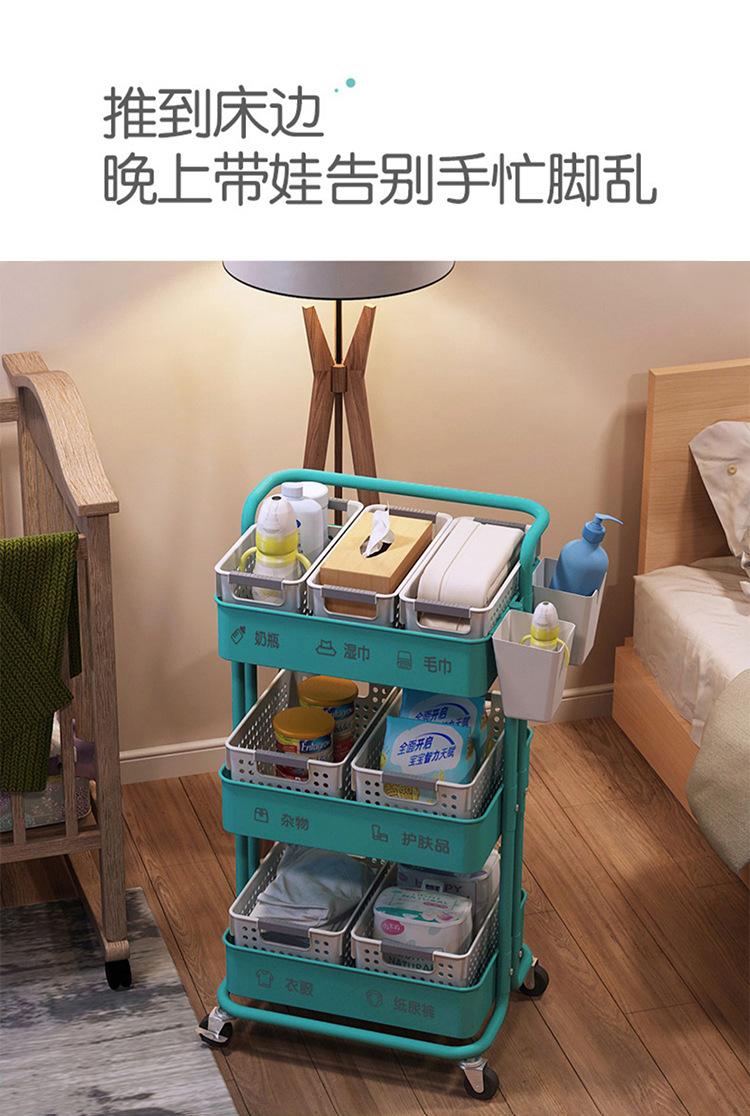 트롤리 스토리지 랙 주방 바닥 다층 이동식 워터 컵 선반 아기 제품 스낵 스토리지 랙