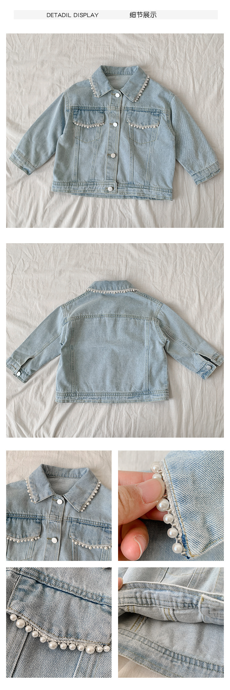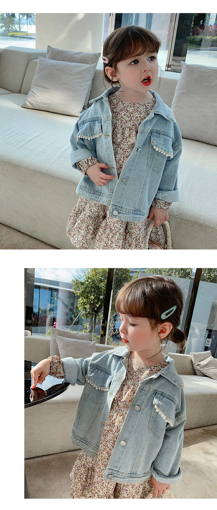 한국 스타일 소녀의 봄 옷 새로운 어린이 진주 데님 코트 아기의 봄과 가을 재킷 스타일리스트 카디건 데님 옷
