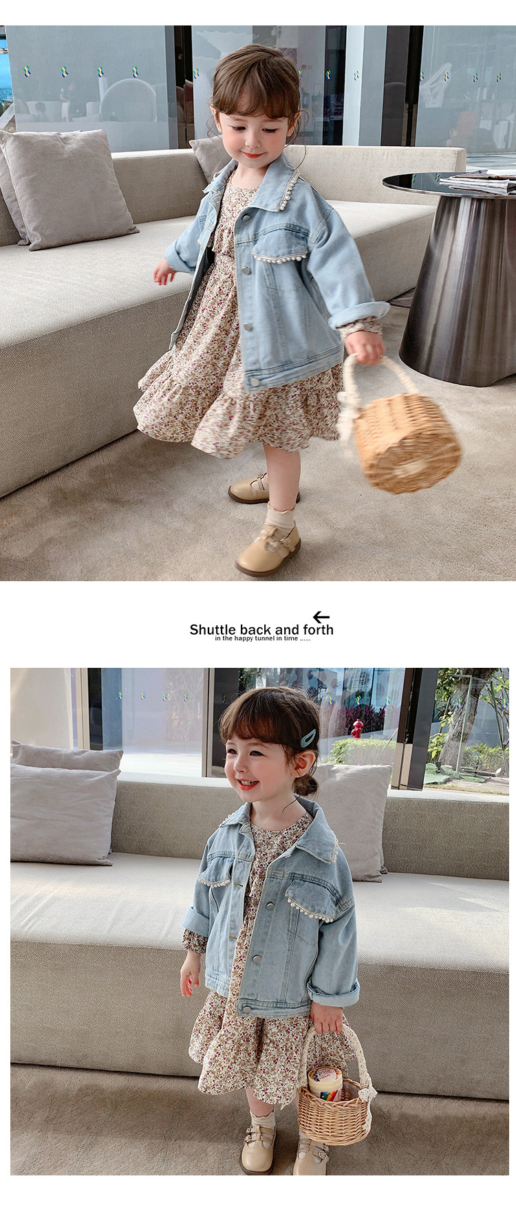 한국 스타일 소녀의 봄 옷 새로운 어린이 진주 데님 코트 아기의 봄과 가을 재킷 스타일리스트 카디건 데님 옷스토어 가기