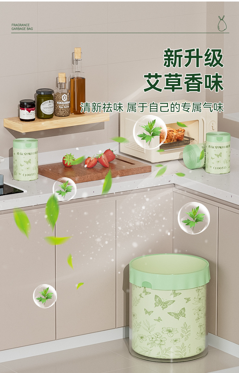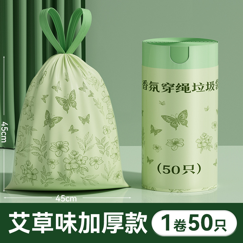 주머니형 쓰레기봉투, 쑥향 프린트, 손잡이형 주머니형 특대형 두꺼운 쓰레기봉투, 주방용 두꺼운 대형 청소봉투