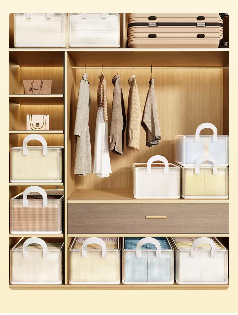 의류 보관 상자 가정용 투명 옷장 옷 바지 접이식 보관 바구니 프레임 인공물 마감 상자