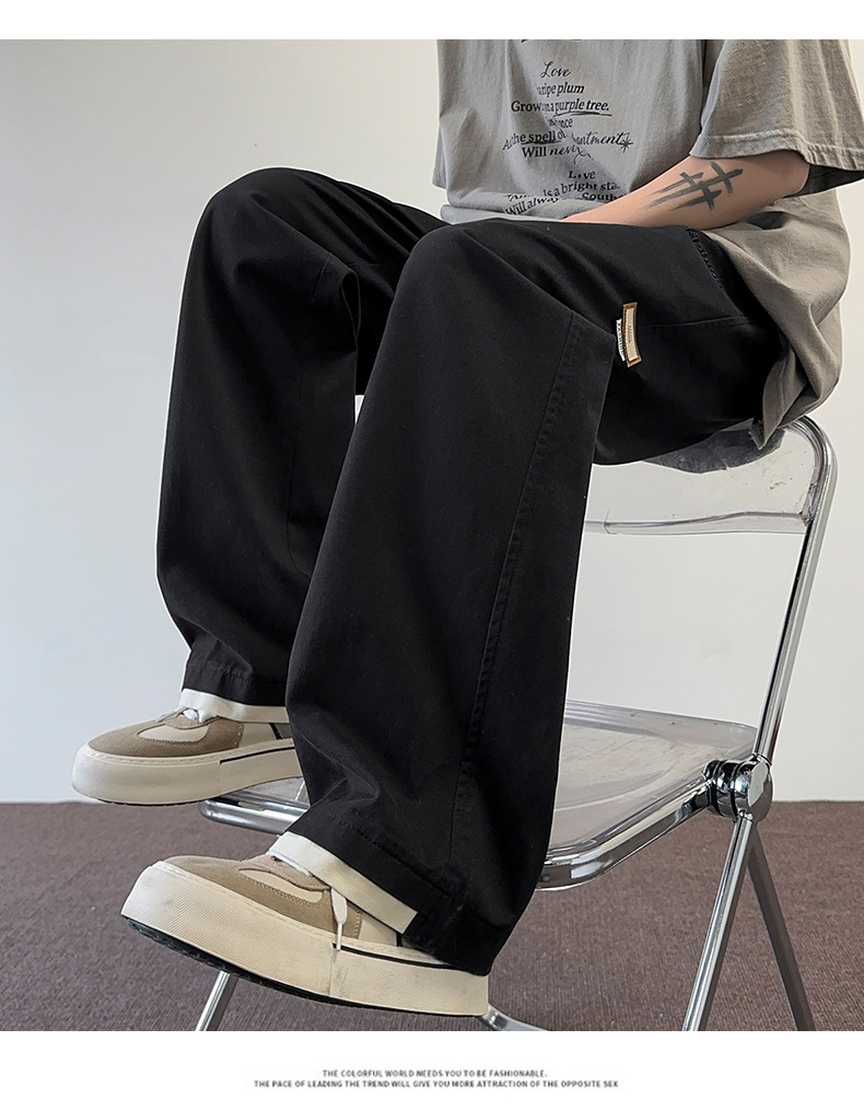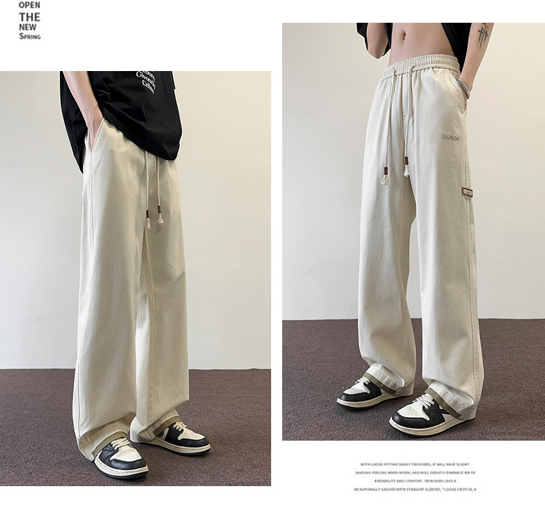 아메리칸 스타일 캐주얼 바지 남자 2025 새로운 얇은 편안한 담그기 흰색 바닥 느슨한 끈 느슨한 스트레이트 바지스토어 가기