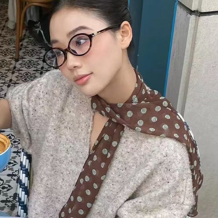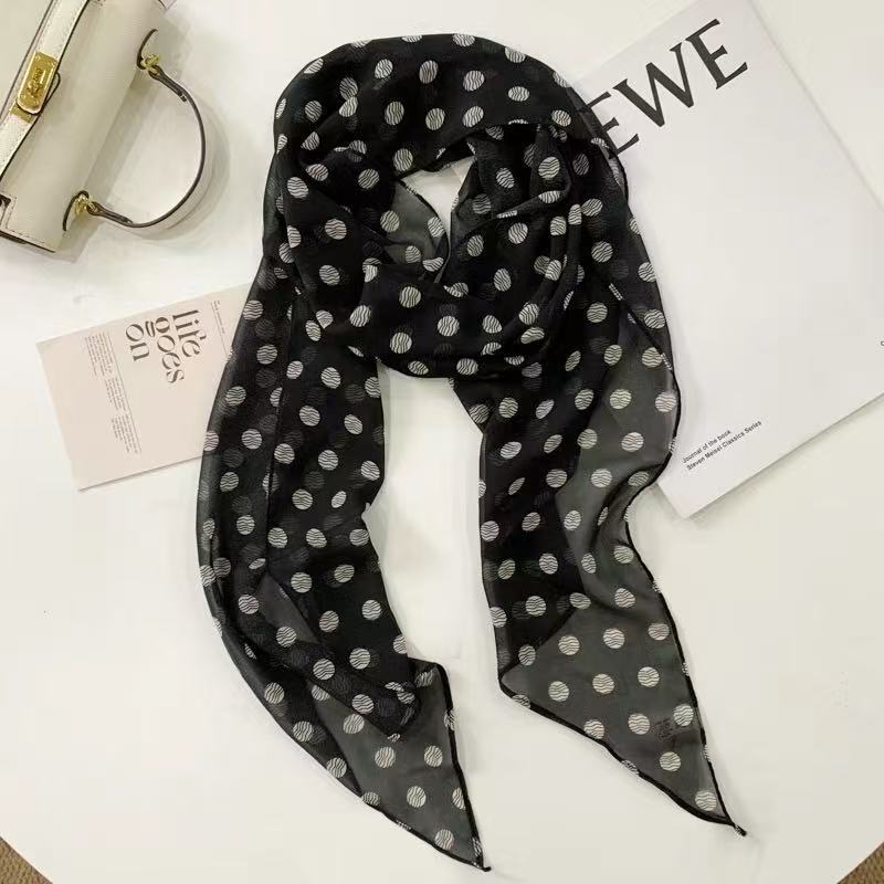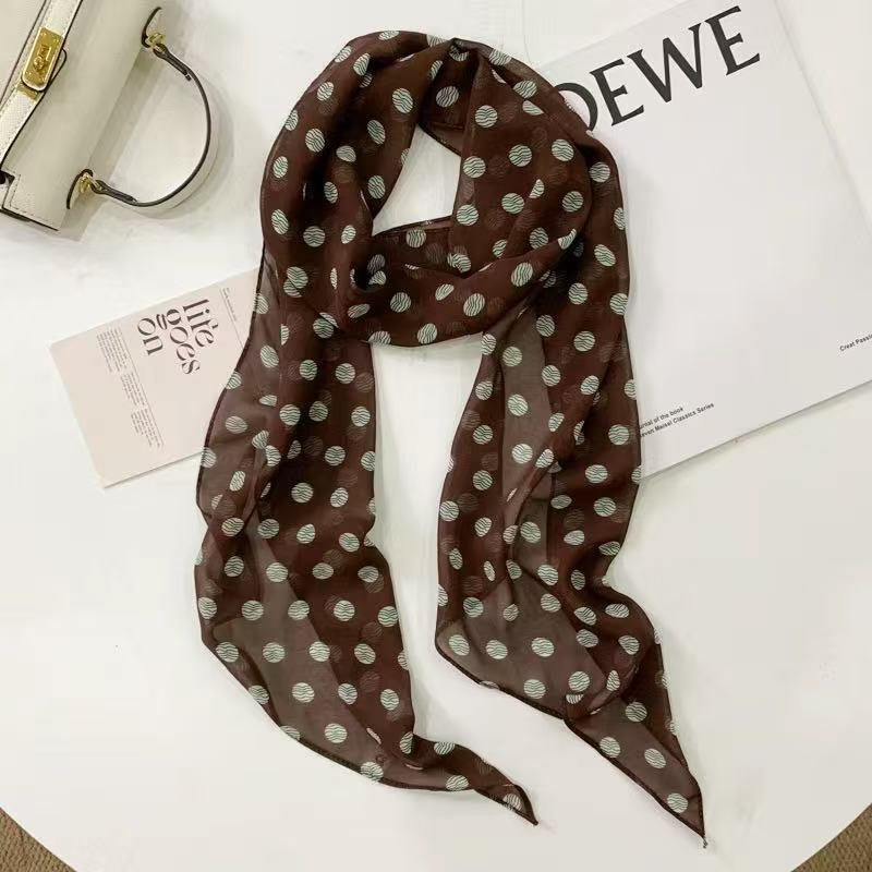 브라운 물방울 무늬 실크 스카프 프린트 액세서리 목걸이 여성용 2024년 신상 헤어밴드 머리 묶는 긴 스카프 패셔너블하고 다용도스토어 가기