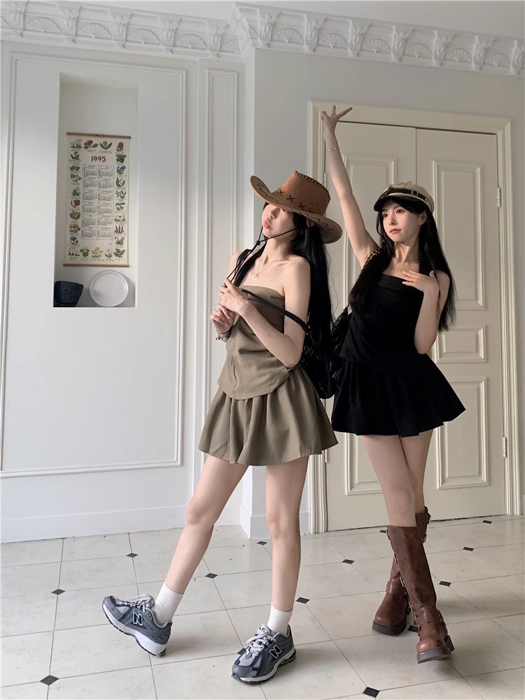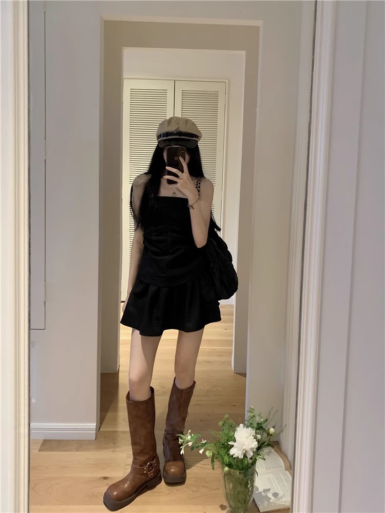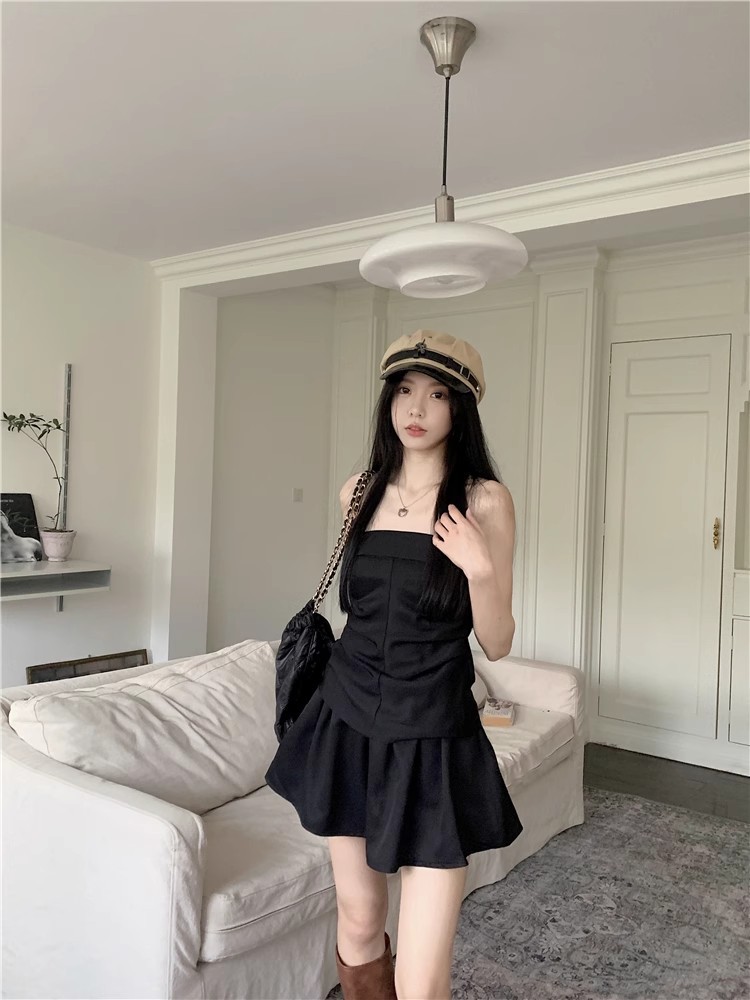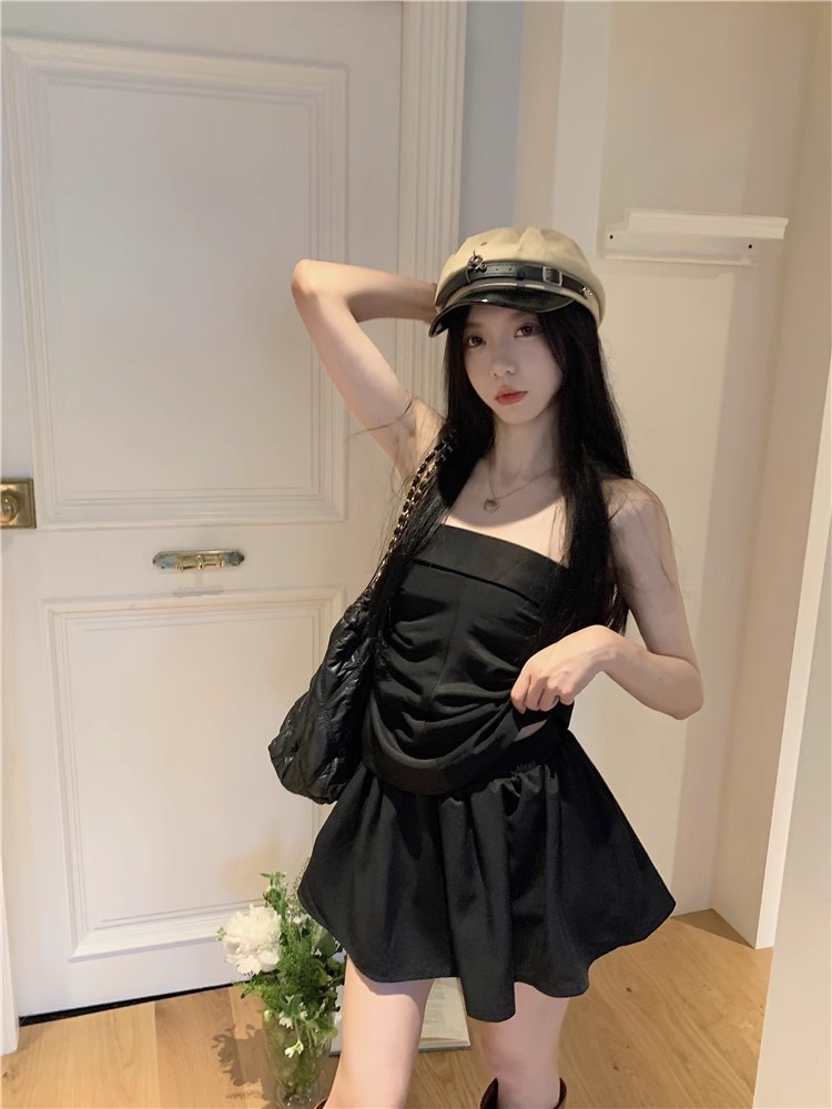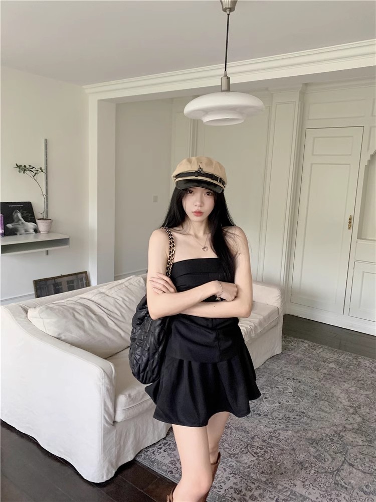 달콤한 향신료 소녀 세트 여성 틈새 디자인 감각 끈없는 조끼 여름 최고 높은 허리 짧은 치마 하프 길이 스커트 투피스 세트