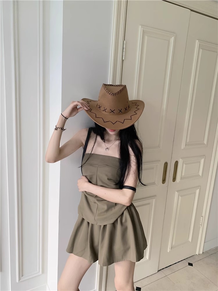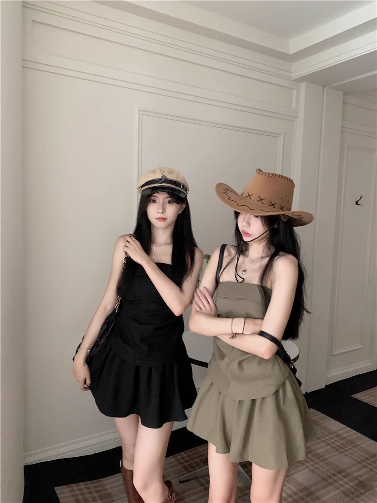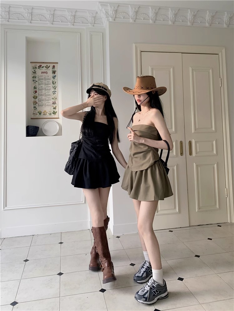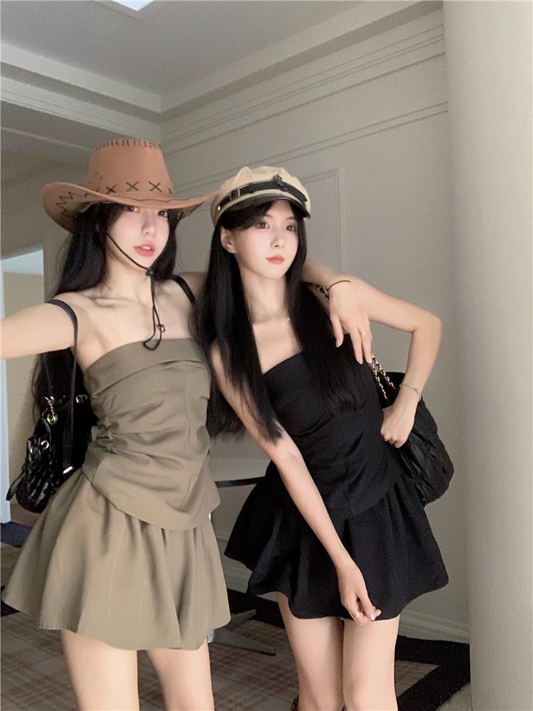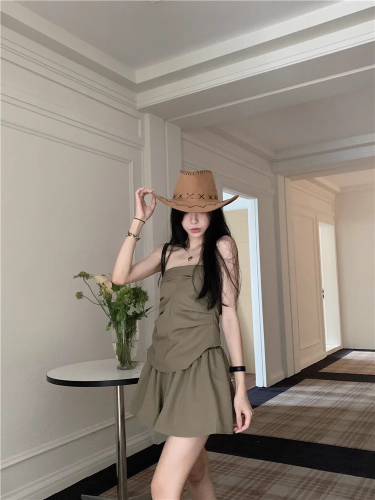 달콤한 향신료 소녀 세트 여성 틈새 디자인 감각 끈없는 조끼 여름 최고 높은 허리 짧은 치마 하프 길이 스커트 투피스 세트스토어 가기