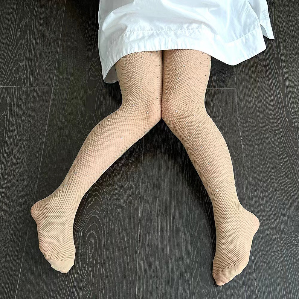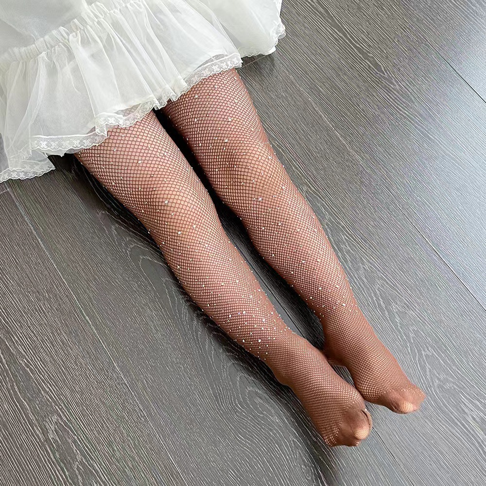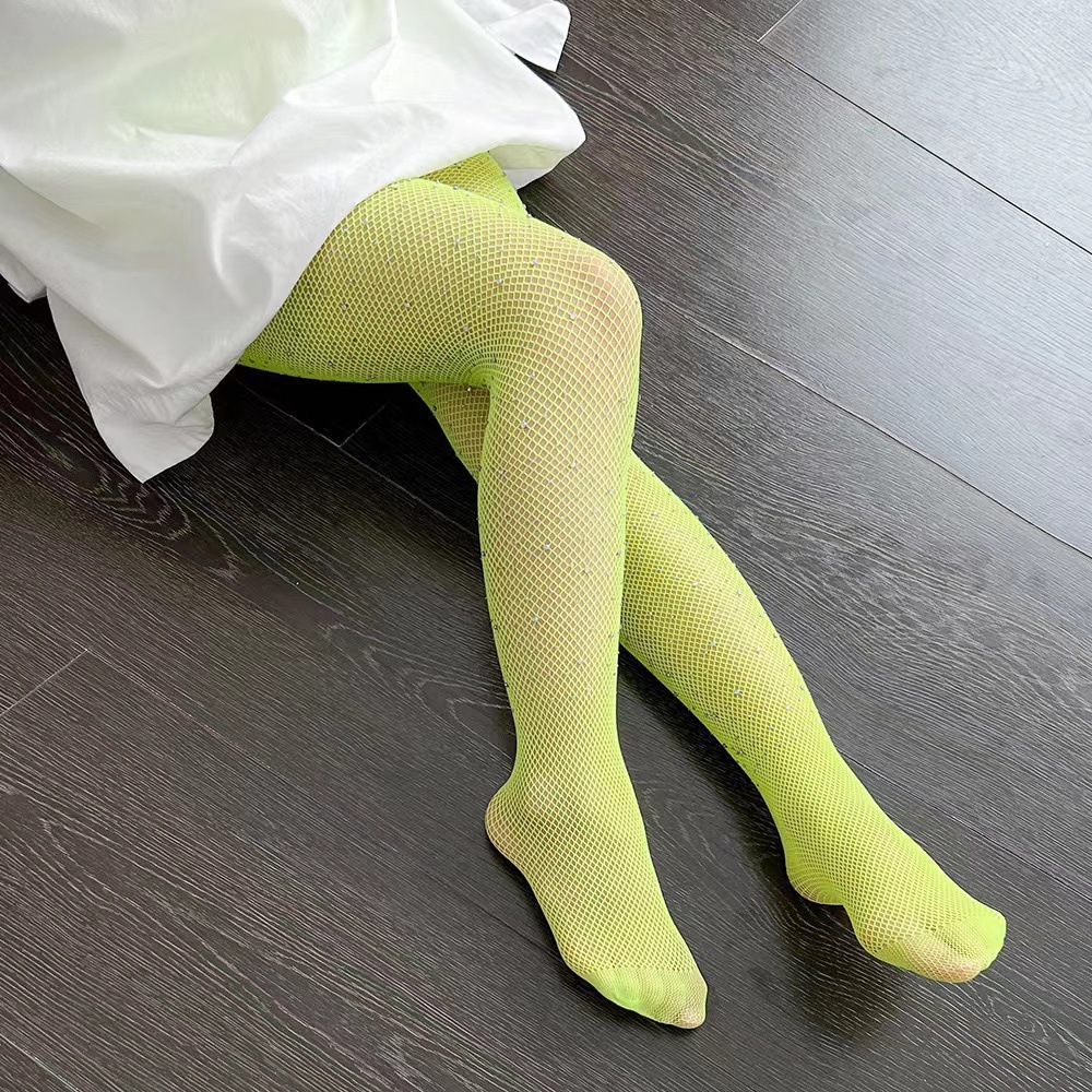 유럽과 미국의 핫 라인스톤 어린이 양말 Fishnet 양말 포인트 라인 스톤 팬티 스타킹과 라인스톤 컬러 메쉬 할로우 양말스토어 가기
