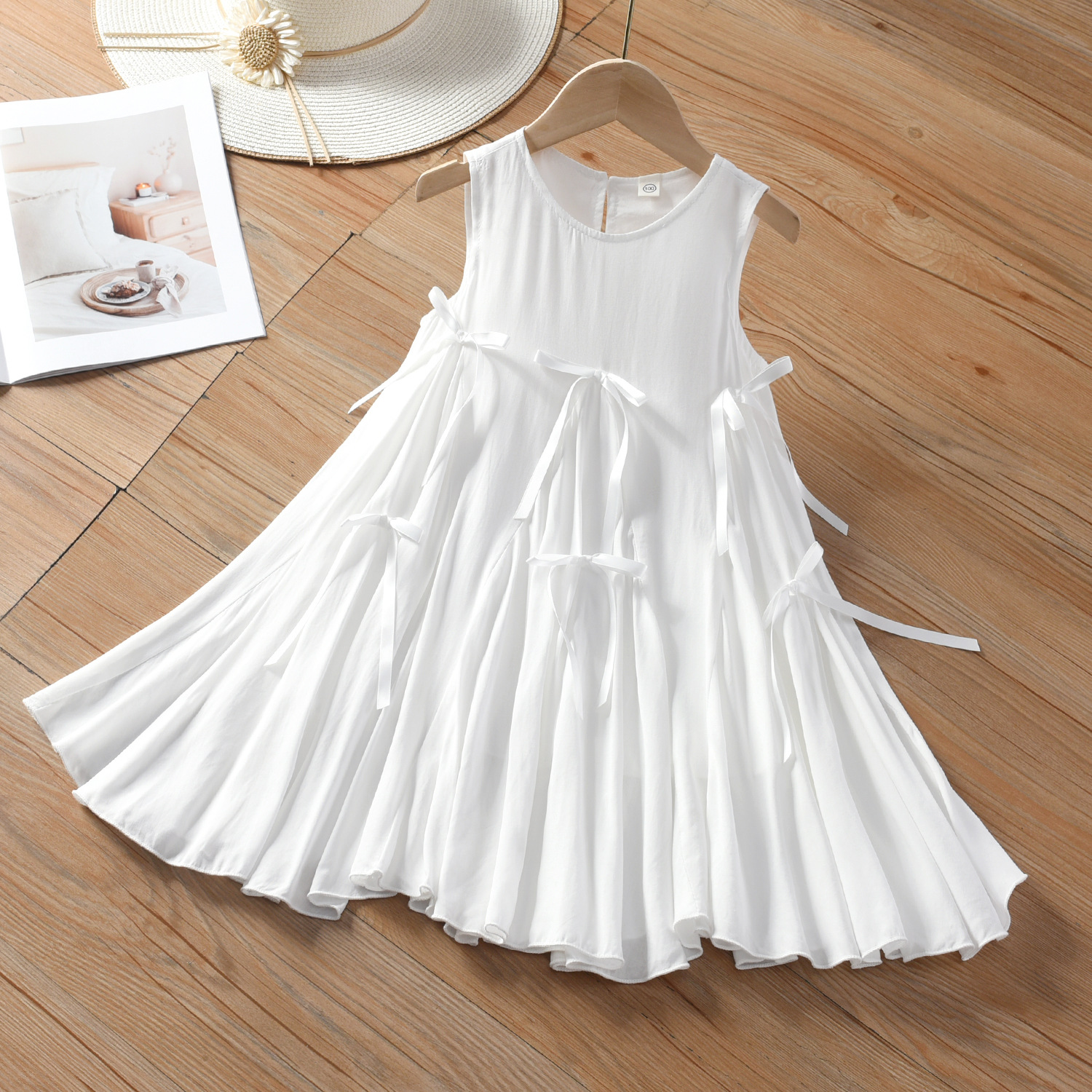 소녀 서양식 면 실크 원피스 2025 여름 새로운 도착 화이트 활 공주 원피스 아기 달콤한 유행 원피스
