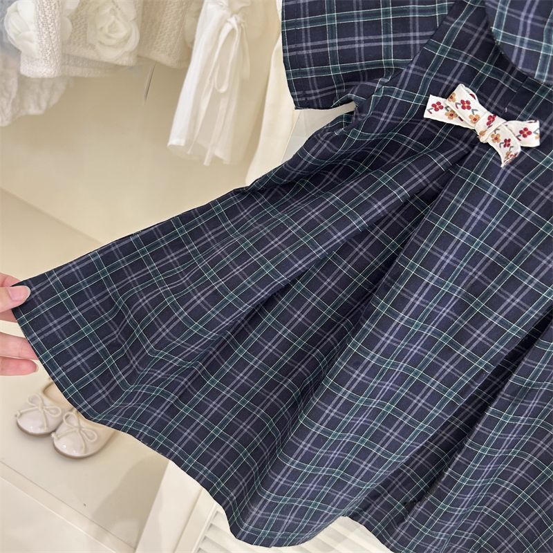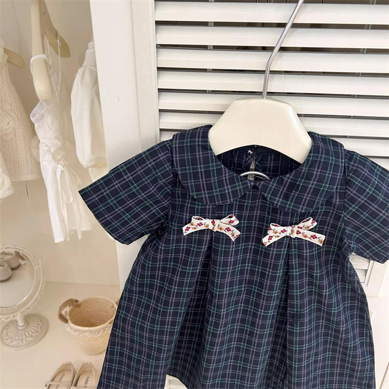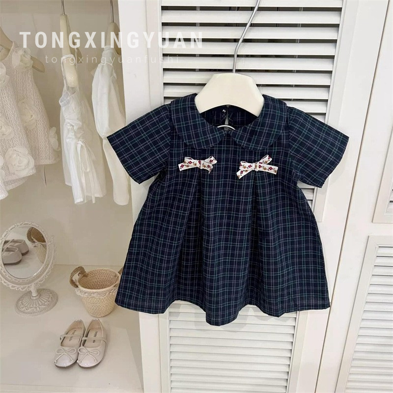 Tongxingyuan 2025 여름 소녀 유행 격자 무늬 한국 인형 목걸이 원피스 아기 세련된 공주 격자 무늬 치마스토어 가기
