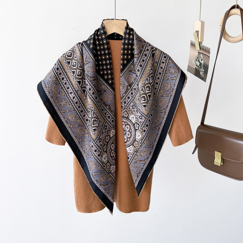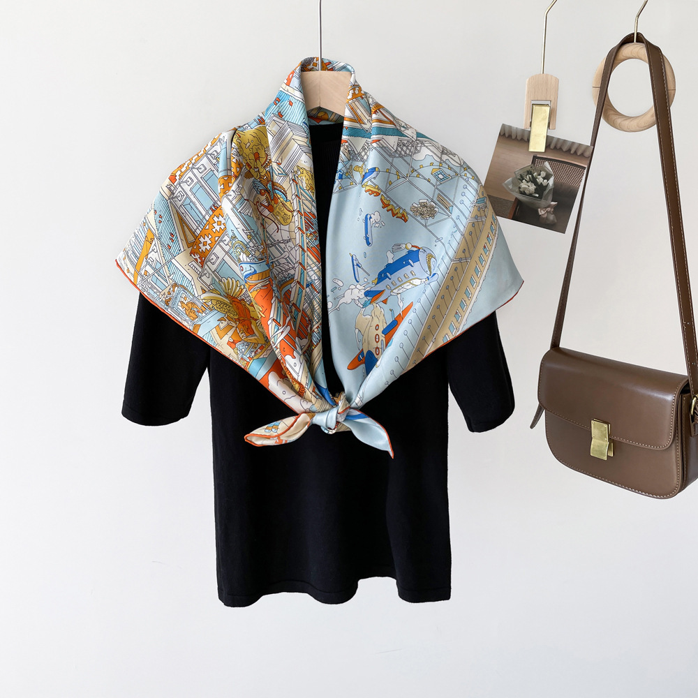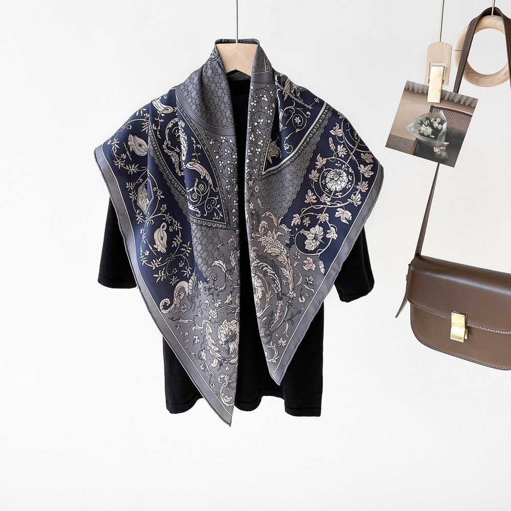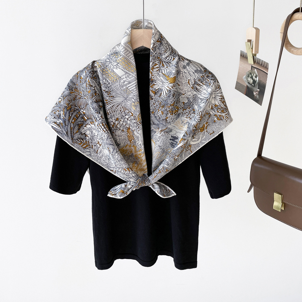 14 Mmi 실크 대형 스퀘어 스카프 여성 90cm 트윌 실크 스카프 수제 커드 스카프 목도리 스카프 배치스토어 가기