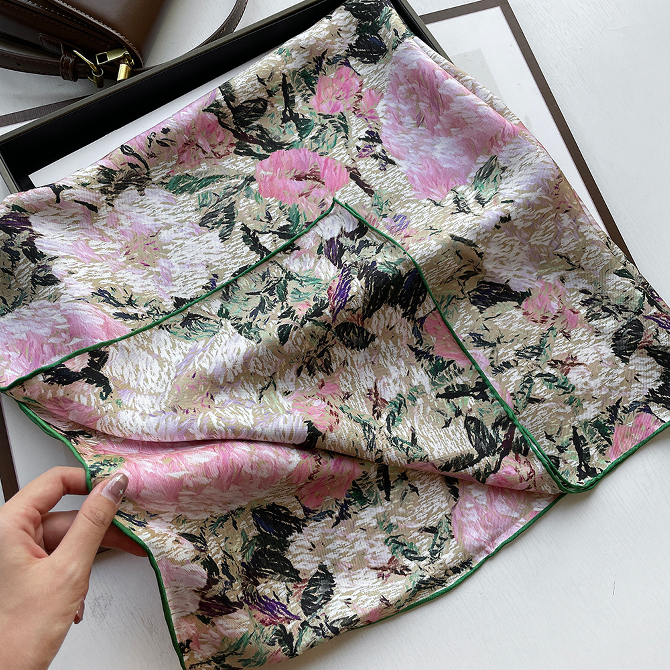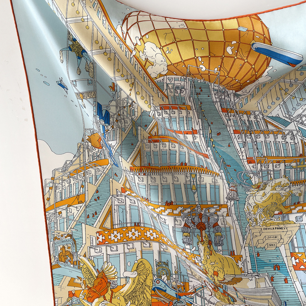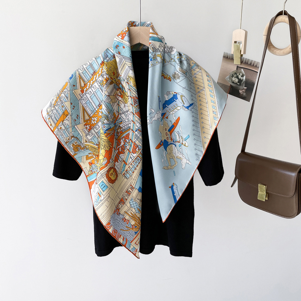 14 Mmi 실크 대형 스퀘어 스카프 여성 90cm 트윌 실크 스카프 수제 커드 스카프 목도리 스카프 배치스토어 가기