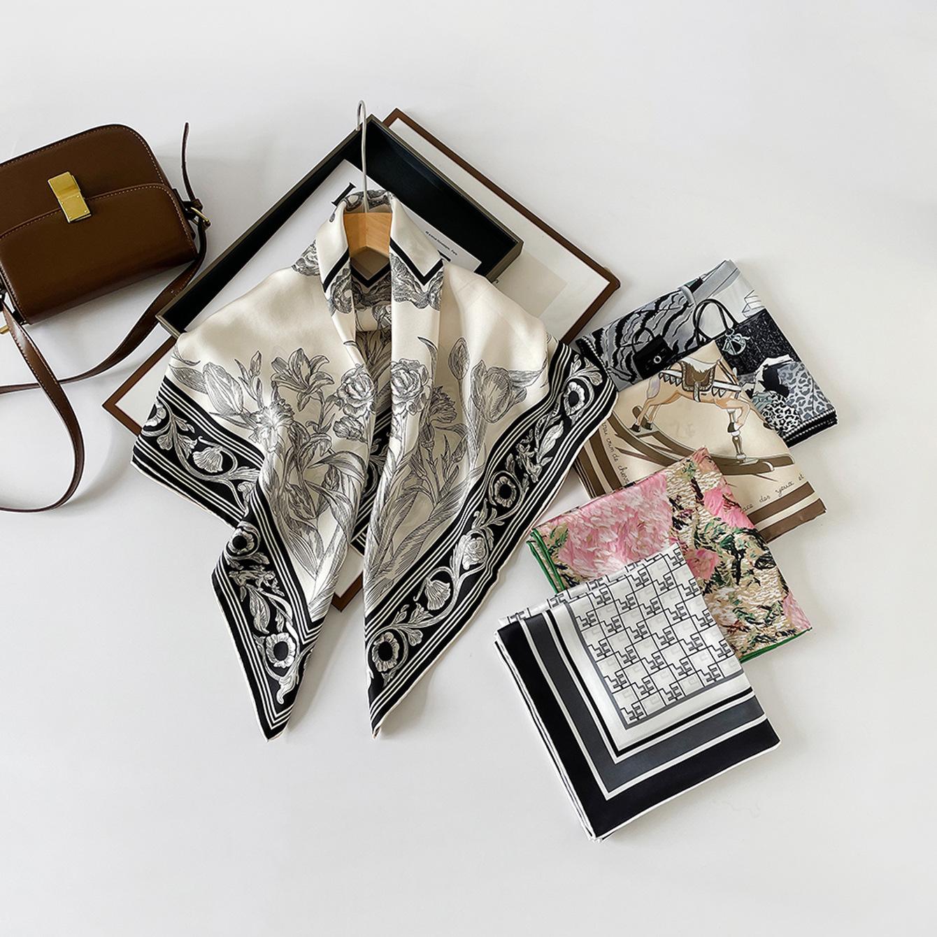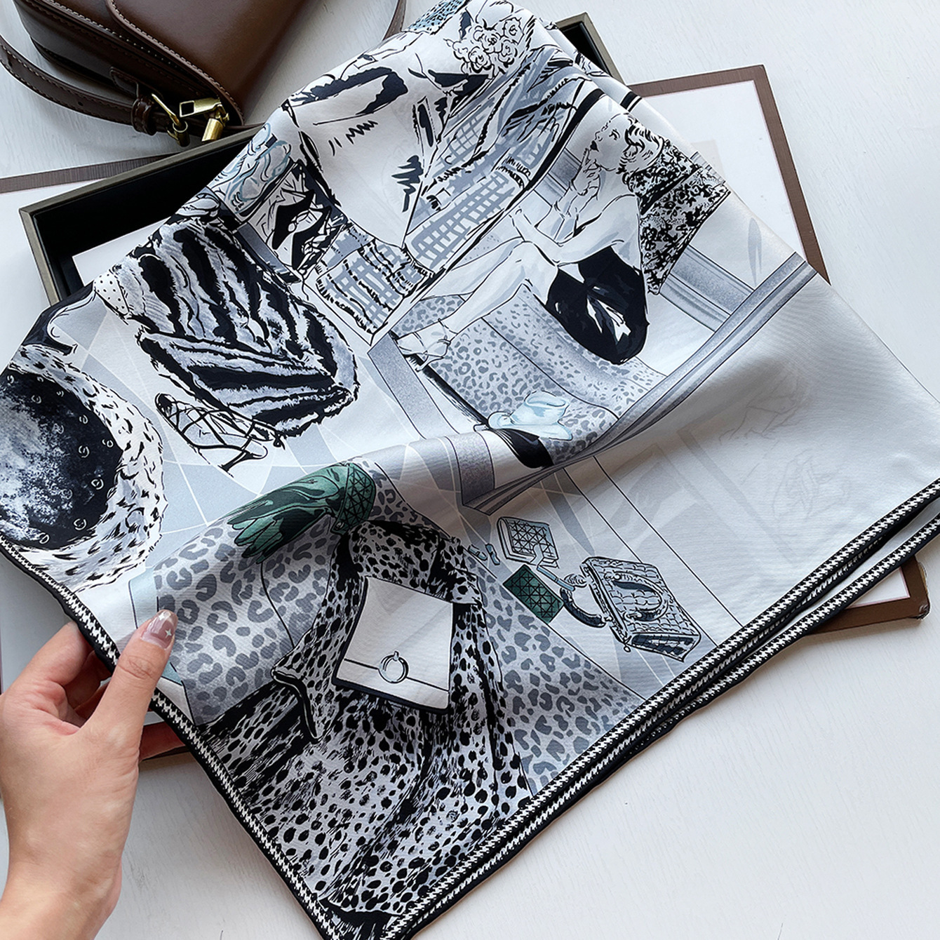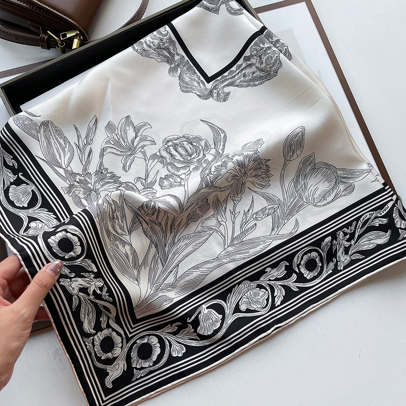 14 Mmi 실크 대형 스퀘어 스카프 여성 90cm 트윌 실크 스카프 수제 커드 스카프 목도리 스카프 배치