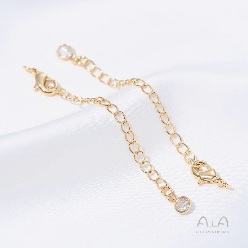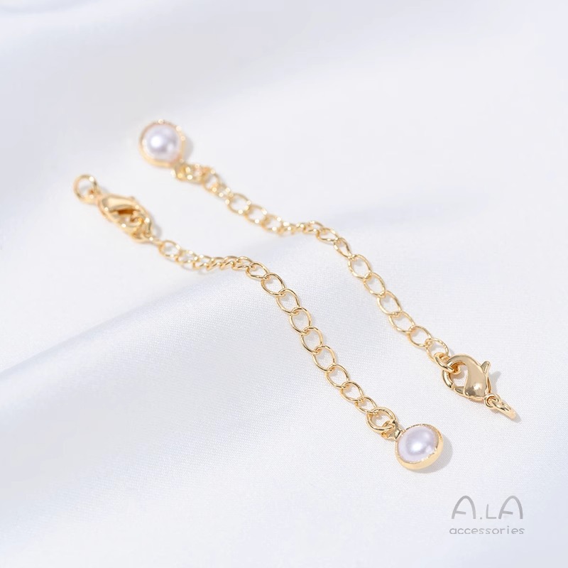 강한 색상 유지 14K 골드 상감 복숭아 심장 물방울 지르콘 진주 버클 테일 체인 DIY 수제 보석 확장 체인 액세서리스토어 가기