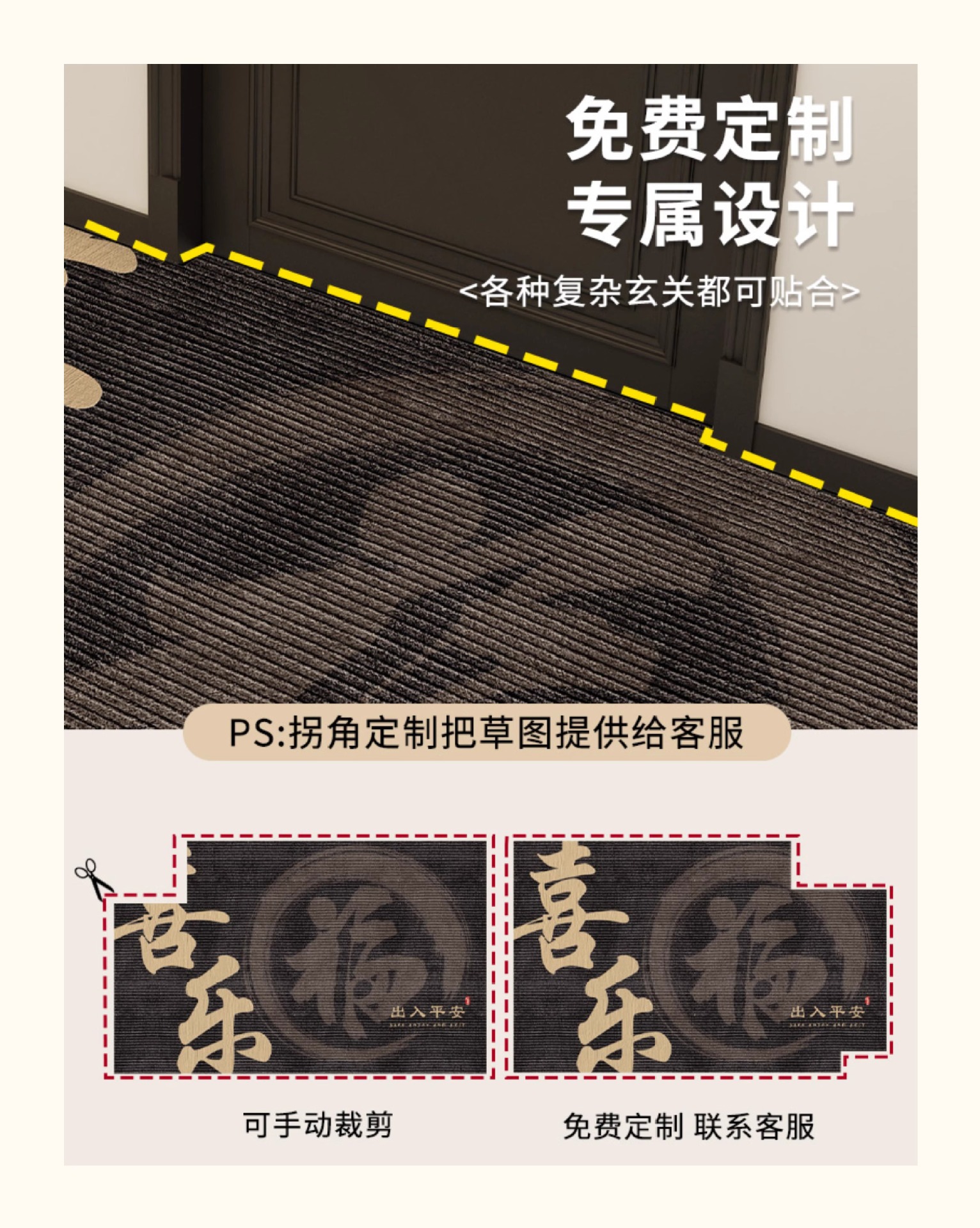 히데푸 도어 매트 입구 텍스트 발 매트 가정용 내마모성 미끄럼 방지 간편한 커트테이블 도어 카펫