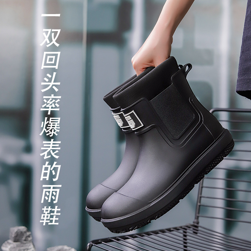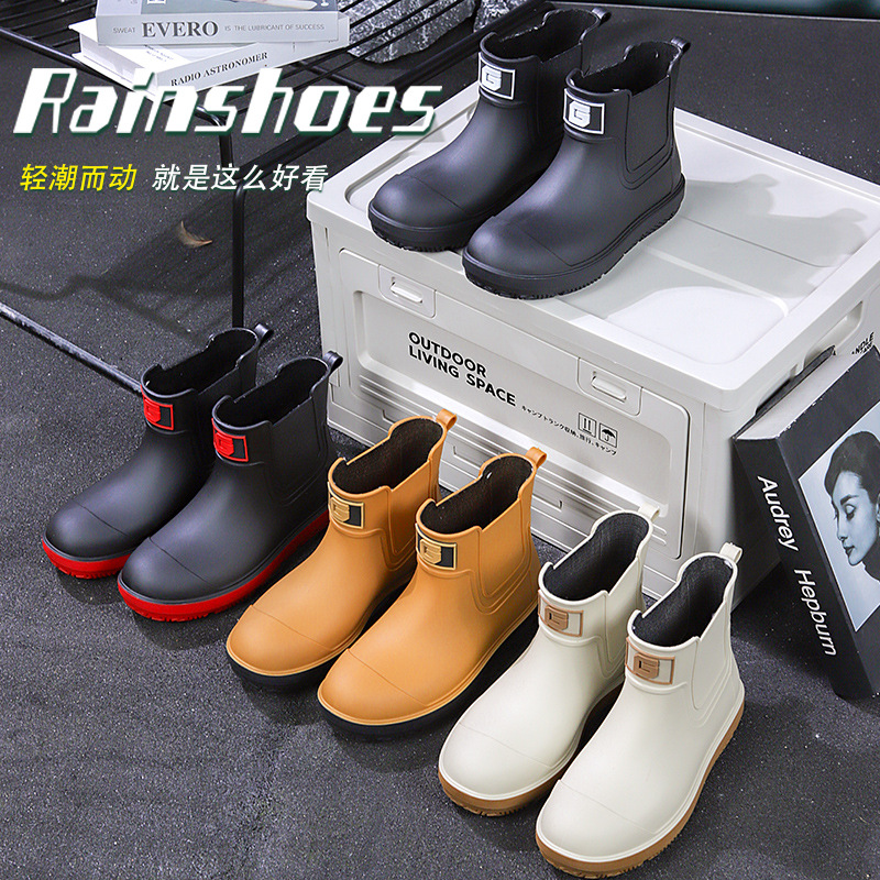 커플의 레인 부츠 야외 방수 고무 신발 내마모성 물 신발 국경 전자 상거래 도매로 남성과 여성을위한 미끄럼 방지 중간 튜브스토어 가기