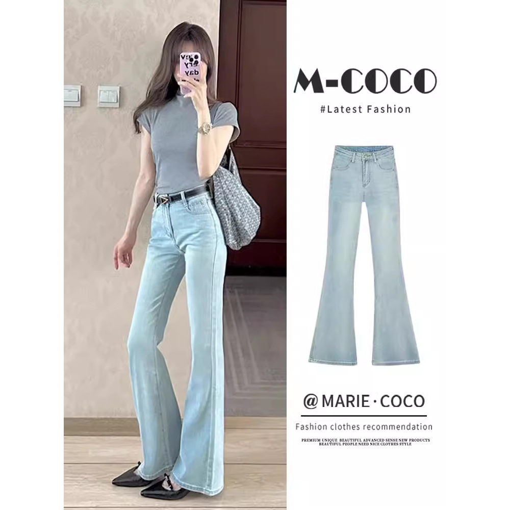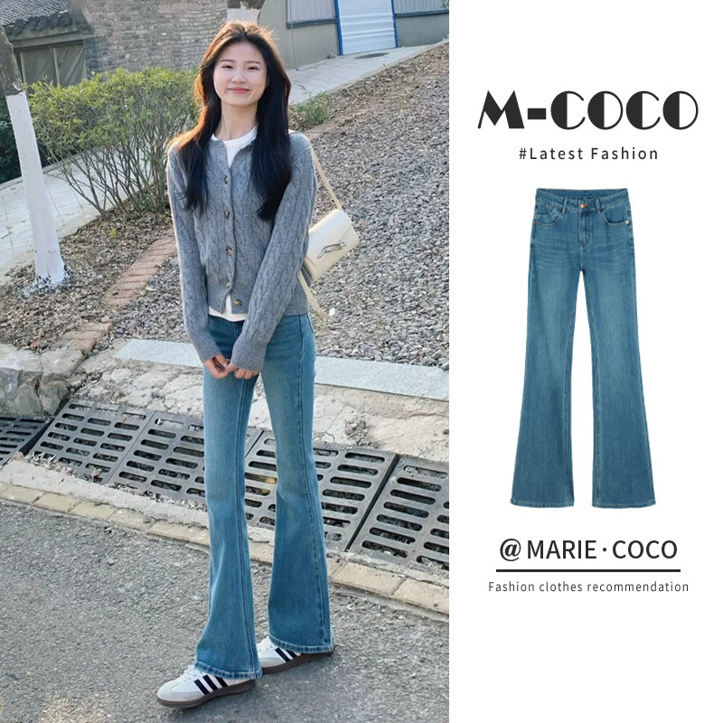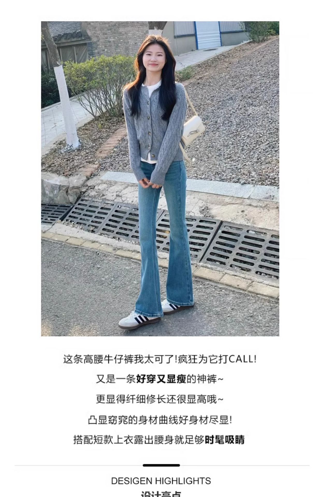 작은 펜던트 플래 팬츠 2025 새로운 봄과 가을 고급 블루 하이 허리 마이크로 블레 청바지스토어 가기