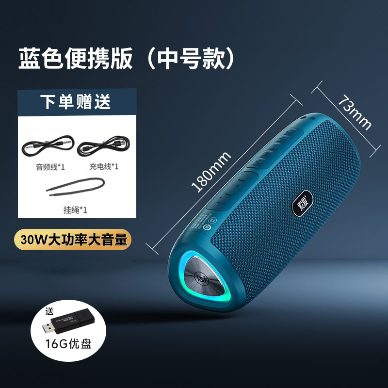• 중형 휴대용 블루 + 16G USB 플래시 드라이브 - 끈 포함 [Typce 충전 + Bluetooth 5.3 + FM 라디오]