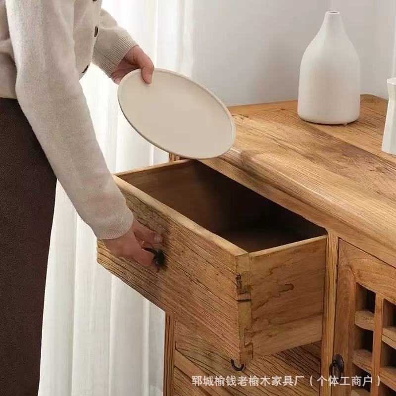 새로운 중국 스타일 레트로 오래 된 느릅 나무 사이드 보드 가정용 거실 입구 로커 이동식 간단한 단단한 나무 버킷 캐비닛
