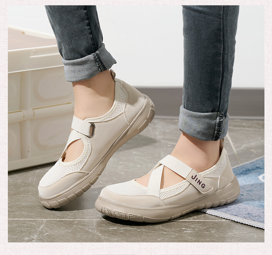 2025 새로운 유행 패션 엄마 캐주얼 신발 국경 플러스 사이즈 통기성 경량 단색 중공 메쉬 신발스토어 가기